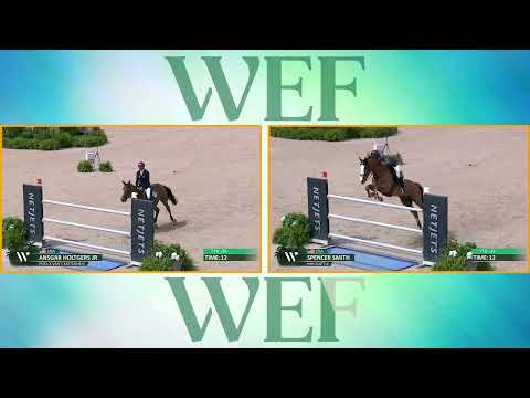 The time they posted was quick, crossing the timers in 40.04 seconds. Second-place finisher Spencer Smith (USA) almost caught him as last to go, finishing in 40.13 seconds aboard HHS Seattle, owned by Ashland Farms. In third was Shane Sweetnam (IRL) with Gilona AO, owned by himself, Popish Farm, and Seabrook LLC.