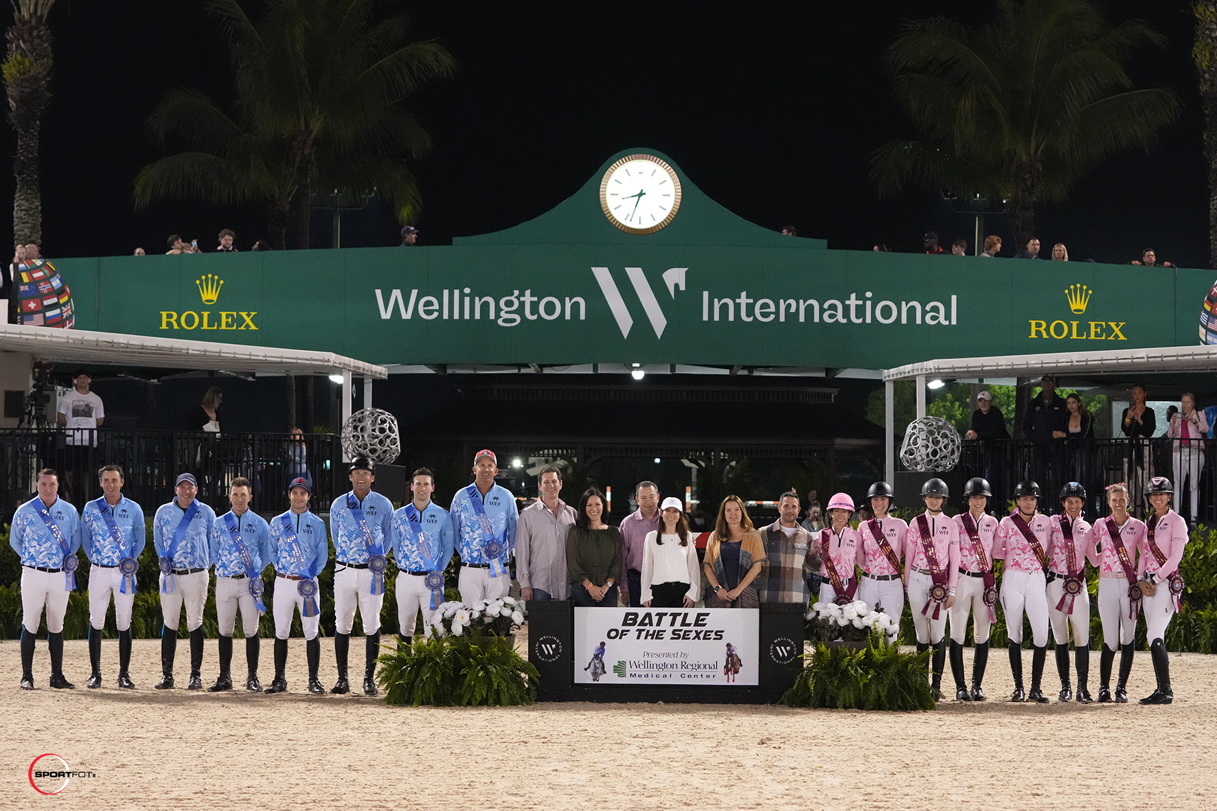The first “Saturday Night Lights” event of 2024 started off with a repeat win for the men’s team in the $75,000 Battle of the Sexes, presented by Wellington Regional Medical Center. The crowd-favorite event highlighted Premiere Week of the 2024 Winter Equestrian Festival (WEF), which runs through March 31 at Wellington International.