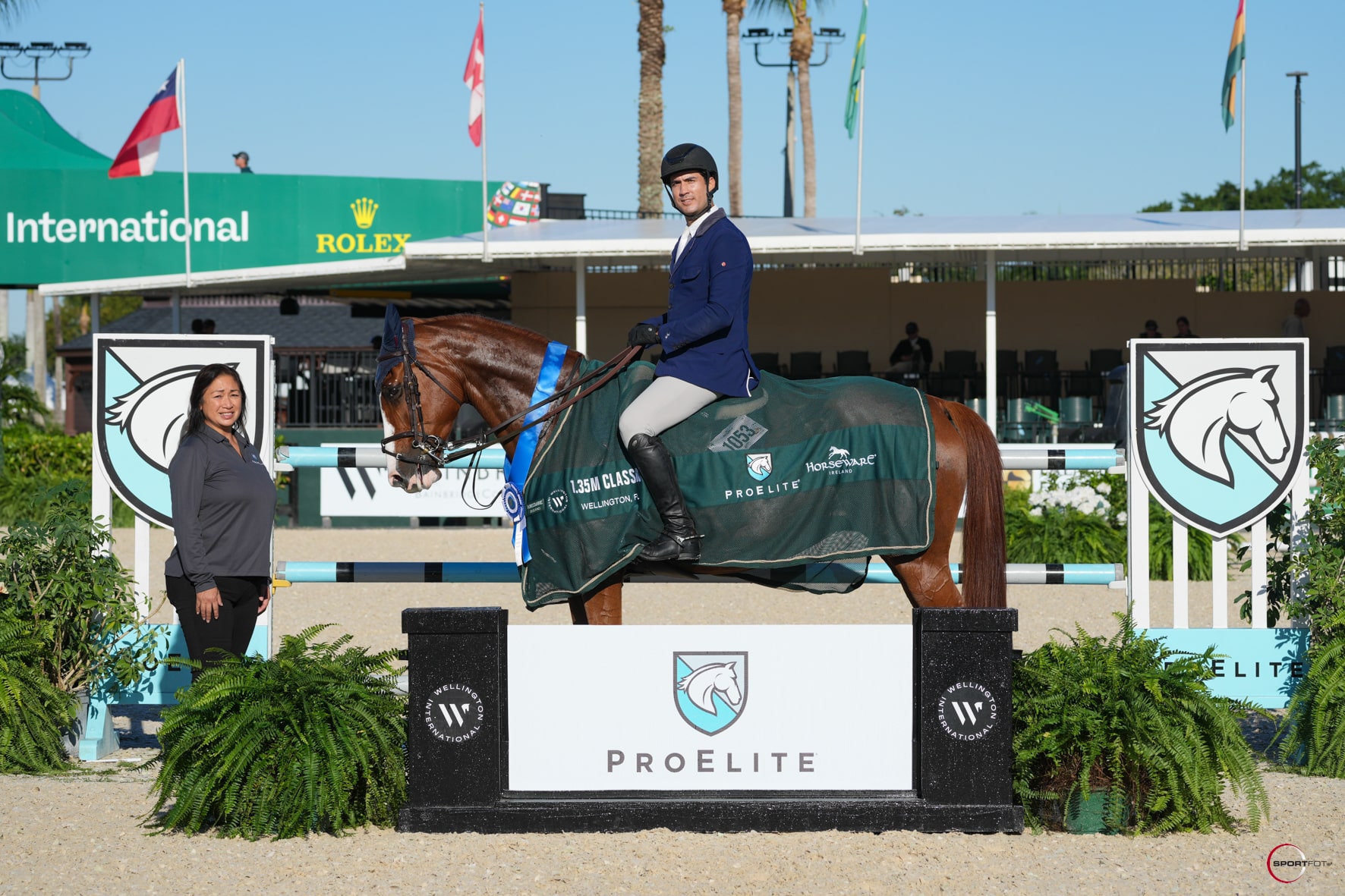 Saturday’s schedule kicked off with high-speed competition in the $5,000 1.35m Open Stake, sponsored by ProElite. Last to enter the ring, Juan Jose Bancalari Elmudesi (DOM) and Fraxinus Des Coeuries, owned by himself, clinched the win with an expertly ridden double-clear time of 34.683 seconds. Spain’s Gonzalo Busca Roca and Quicksilver C, owned by Stransky Mission Farm & Kalany Stables LLC, claimed second in 35.108 seconds, while Lebanon’s Jad Dana and Donald Stewart’s C’est Jens secured third with a clean effort in 36.403 seconds.