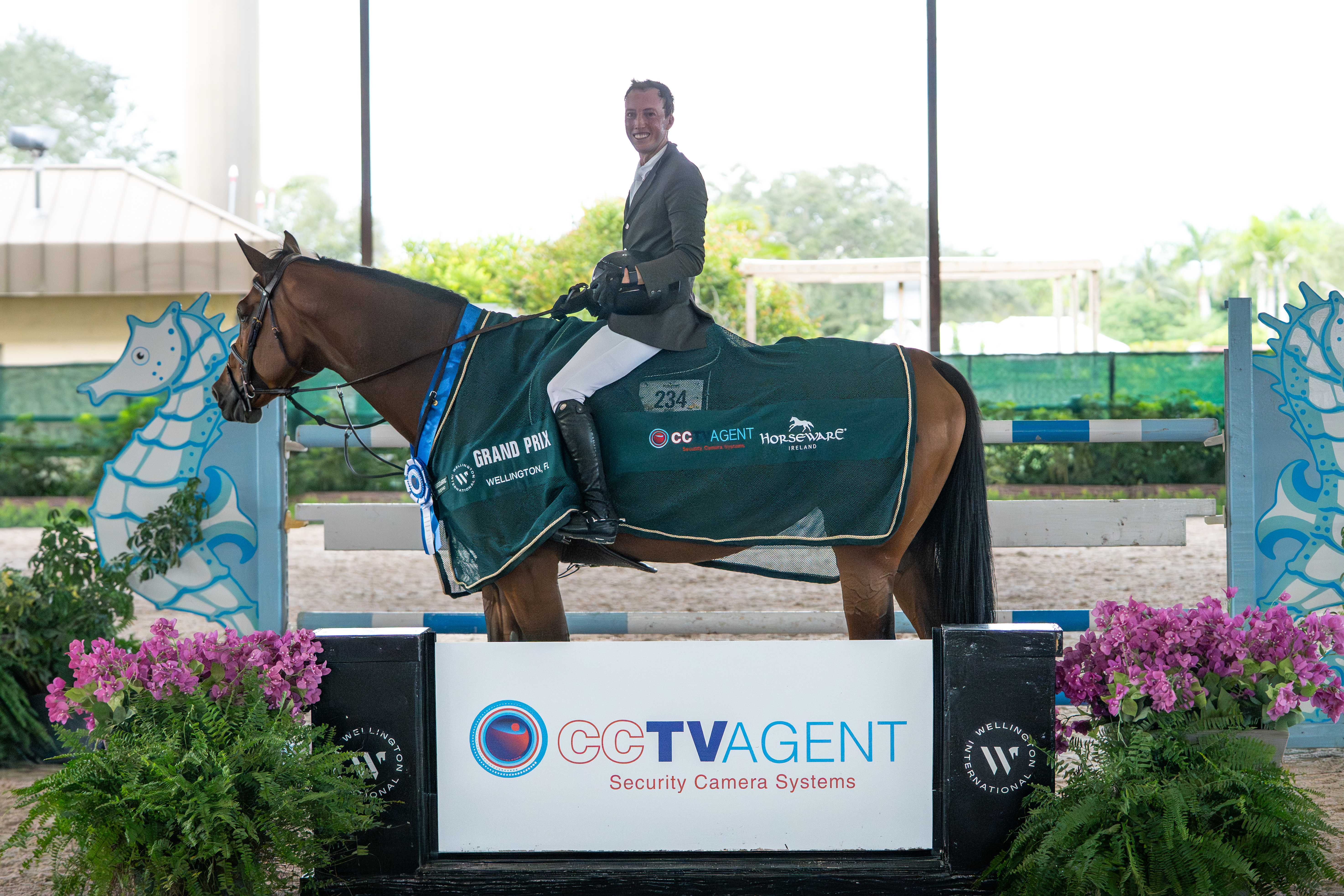 Tension built throughout the $10,000 CCTV Agent Grand Prix as riders chased the lead time set early in the class. Juan Manuel Gallego (ESP) and his own Solaguayre Quanta went third in the order and posted a fault-free round in 36.349 seconds, holding the top position for most of the class. German Camargo (COL) and Ophelia, owned by Laurie Vanwynsberghe, delivered a strong double-clear effort in 37.68 seconds to take third place.