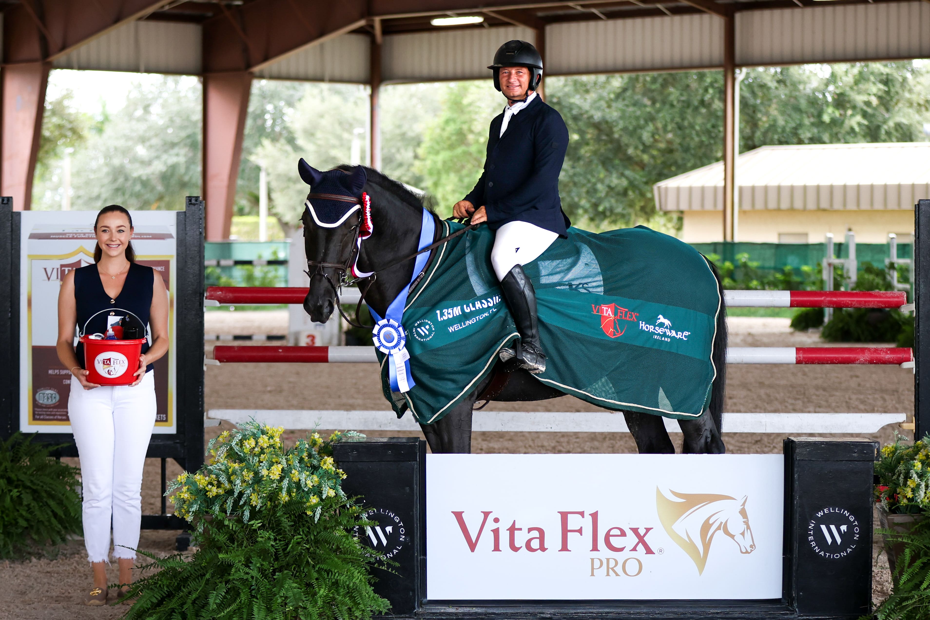 Saturday’s 1.35m Open Stake, sponsored by VitaFlex, unfolded as a test of accuracy and composure. With a smooth and efficient ride, Alberto Michan (ISR) guided Jack, owned by Kayla Savard, to the only double-clear of the class, securing the top spot in 43.418 seconds. The next best effort came from Andressa Quadros (COL) and her mount Starsky, who finished with four faults in the jump-off in 46.549 seconds to take second. Completing the leaderboard, Laura Rubinate (USA) and Judika KM earned third after a consistent showing throughout both phases.