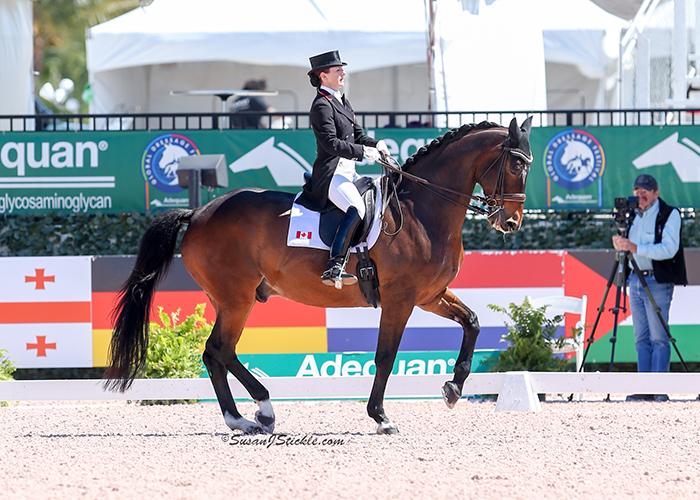 Tomlinson advanced in front of Juan Matute, Jr. in the first round of knockout competition aboard Zazou, a 2004 Dutch Warmblood gelding (00 Seven x Kimbel) owned by Dana Dion, with a score of 66.535%. Matute, Jr. scored a 64.825% and would ultimately finish in third place. “You certainly couldn’t have had two more different rides in one day. I don’t have much experience riding Spanish horses at all and it was my first time riding one in a competition setting,” explained Von Martels. “He was very sweet and had my back a few times when I didn’t give him any extra confidence. Patricia’s [Koschel] horse I thought was actually very fun to ride and is certainly a powerful, strong horse, but when you find that connection with him you could ride a very accurate test.” Tomlinson drew the short card and rode back-to-back rounds, after already riding the FEI Grand Prix Special aboard Rosalie B and was admittedly tired. Tomlinson and Leuchtfeuer DE scored a 67.719% and would await Von Martels score. Jokingly, Tomlinson admitted that she probably got Leuchtfeuer DE very warmed up for Von Martels, who performed a lovely test to score a 70.008% for the win. “The first ride was very fun, it was a very powerful horse. The canter was trickier to ride because it got very big in front. It was a good challenging ride though. I was expecting Leuchtfeuer DE to be a bit lazy and then he actually got very hot with me during the test,” commented Tomlinson. “He just got a bit too strong, but unlike Chris, I don’t think I had collection the entire time during my test. I was definitely not lacking impulsion during the test, but probably lacking a bit of connection.”