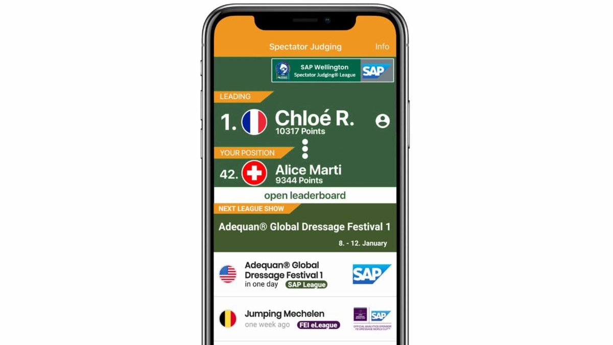 For Immediate Release Jennifer Wood Media, Inc. Wellington, FL – January 9, 2020 – Equestrian Sport Productions (ESP) announces that they have introduced the exciting digital fan series, SAP Wellington League, for the 2020 Adequan Global Dressage Festival (AGDF). The SAP Wellington League lets spectators use the well-established Spectator Judging app, the state-of-the art-mobile application which enables fans to get in the judge’s seat to create audience scores and rankings in real time. SAP, as the Official Analytics Sponsor of the FEI Dressage World Cupo and the world’s largest enterprise application software company, has built upon the success of the Spectator Judging app, making fans an integral part of the overall series. The winner of the SAP Wellington League receives a fantastic prize package to the 2020 FEI World Cupo Dressage Final in Las Vegas in April. The innovation of the SAP Wellington League relies on a new gamified ranking functionality, as users collect points by participating in Spectator Judging throughout the 2020 AGDF during all seven FEI Grand Prix Freestyle competitions, both on-site and online. Participants will submit their scores and receive points based on how close they come to the audience average score. Additional points can be collected by judging more than one competition, up to four events. A live leaderboard will be on the AGDF website, as well as on the Spectator Judging app, to display the current ranking of League participants so fans can track their progression on the leaderboard and share their weekly results and overall standings.