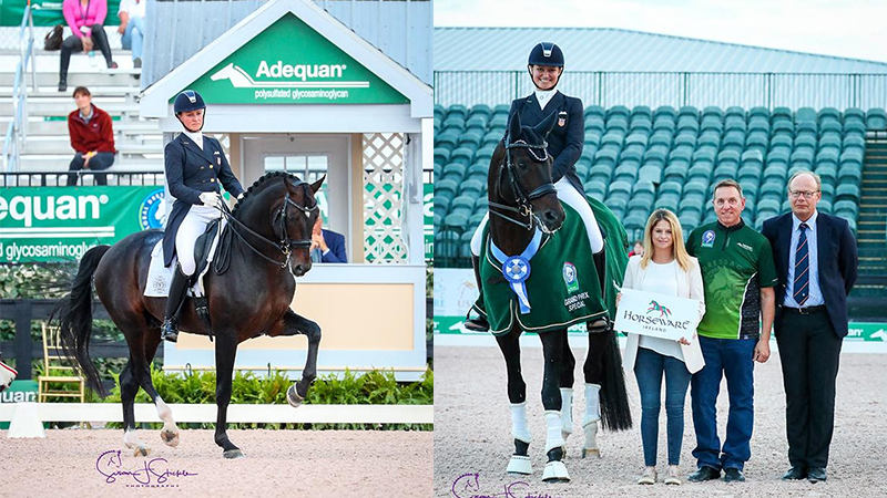Lyle and the 11-year-old Hanoverian stallion (by Sandro Hit x Donnerhall) owned by Elizabeth Juliano chalked up 75.234%, which would have been even higher had it not been for a jog in the walk, eliciting fives from all five judges. The stallion’s energy and ability, both for his extraordinary ability to collect, yet to relax just a moment later, drew many admirers, and higher yet scores could well be on the horizon. We’re pretty green still in the special as he hasn’t done too many of them, but the effort he’s putting in in the ring is phenomenal, and it’s now just a matter of smoothing it out and him understanding what we want and when, because he’s always so eager to offer it all up in there, said Lyle, who trains with Debbie McDonald and was quick to praise her input in their stellar progression. Every time he goes in there, he tries harder and that’s very special. Despite being a stallion, Vinny’ leads a normal home life, going in the paddock, hacking, doing cavalettis and riding around the jumper fields. His temperament and ability in the ring mean he could be a very valuable addition to senior teams over the coming years.
