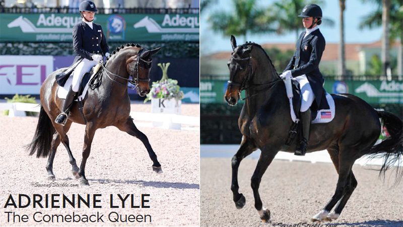 In 2014, Adrienne Lyle took a step back from the international competition arena after retiring her longtime partner and 2012 Olympic mount, Wizard. The 1999 Oldenburg gelding (Weltmeyer x Pica x Classiker) was a large part of the young Lyle’s success, earning her champion honors in the Brentina Cup at USEF National Championships in 2008, a spot on the 2012 United State Olympic Dressage Team, as well as a spot at the 2014 FEI World Equestrian Gameso. Screen Shot 2018-02-01 at 10.57.04 AM Lyle credits much of her knowledge to her first big-name mount. Wizard was a very hot-headed horse, and he was always very reactive, she said. He took a lot of tact to ride and keep together, so I learned how to manage whatever kind of horse I was dealing with on that day. He was not an even, flat-line personality type. He really taught me to be in tune with what he was telling me and to act accordingly. After a three-year hiatus, Lyle returned to the international stage this past winter at the Adequan Global Dressage Festival, introducing her newest FEI Grand Prix mount, Salvino, to the dressage world. Lyle and the 2007 Hanoverian stallion (Sandro Hit x Dynastie x Donnerhall) owned by Betsy Juliano, rode straight to the top, achieving top honors in their first FEI CDI 3* Grand Prix Special together. Lyle commented, Everyone was kind of wondering where Salvino actually was after we bought him, because he stayed home for a year training. I personally think that it’s so important when you get a new horse into your system, that you give them the time to learn your system, exactly the way you want it, from the ground up. She continued, Even though he wasn’t a baby when we got him, every rider is a little different, so we had to take the time to help Salvino understand exactly what we wanted from him. I think if you rush that, you just end up stressing them out or putting them in a situation where they get frustrated. I’m glad that we sat that year out and created a strong relationship because it proved to be very effective for him. Lyle’s unwavering patience did not go un-rewarded, as she also welcomed two new talents to the Small Tour arena. In the spring of 2017 Lyle piloted three horses at the USDF Festival of Champions. Horizon, a 2007 Oldenburg mare (Hotline x Revue x Don Schfro), also owned by Betsy Juliano, ended up securing champion honors in Small Tour, and Harmony’s Duval, a 2008 Dutch Warmblood gelding (Rousseau x Uptown Girl x Riverman), owned by Duval Partners LLC., came in third overall in the Small Tour. Lyle also rode Salvino in the Grand Prix and he ended the Championships with the reserve champion placing in the Large Tour division. AGDF is such an incredible place to show, exclaimed Lyle. The ring has such a great atmosphere to it. It was wonderful to get back in there. Even when Wizard was still competing, we were getting young horses and bringing them along, breaking them, and starting them. It takes years of putting in the work, even though nobody sees what is going on. You kind of disappear out of the spotlight for a while. It was really great to come back with three strong, high quality horses. Screen Shot 2018-02-01 at 10.57.15 AM After Gladstone, Salvino and Lyle headed to Europe for their first major abroad tour together. We did Rotterdam as an individual. I had no plans on doing a team competition because this was his first European Tour and we’d only done one other CDI before in Wellington, explained Lyle. But he was really quite good, he rose to the occasion and ended up being named to the U.S. Nations Cupo team for Aachen. I waffled back and forth about whether or not I wanted to do that with him for his first season at Grand Prix, but I decided that he really proved that he was ready for it. He was amazing there, and ended up being the second highest placing horse on our team behind Laura Graves and Verdades. He handled the whole thing like an old pro. Lyle concluded, This coming year, our goal with Salvino is to try to get a spot on the team for the FEI World Equestrian Gameso. I think that he came out last year and in his third CDI ever, helped the team get the Silver medal at Aachen. He has a strong foundational base and we were able to go right into those bigger environments and electric atmosphere, all because we had a good understanding of each other. He didn’t feel overwhelmed or stressed out. What we have with him is strong and I am confident that it will only get better with time and patience. Entering the 2018 season with an incredibly talented lineup of top horses, with more emerging through the pipeline, Adrienne Lyle has proven once again that with a little patience, hard work, and dedication, success is inevitable and turns her focus once again to impressing on the sport’s biggest stages. This piece was originally featured in the 2018 AGDF Souvenir Program. Photos courtesy of Sue Stickle.