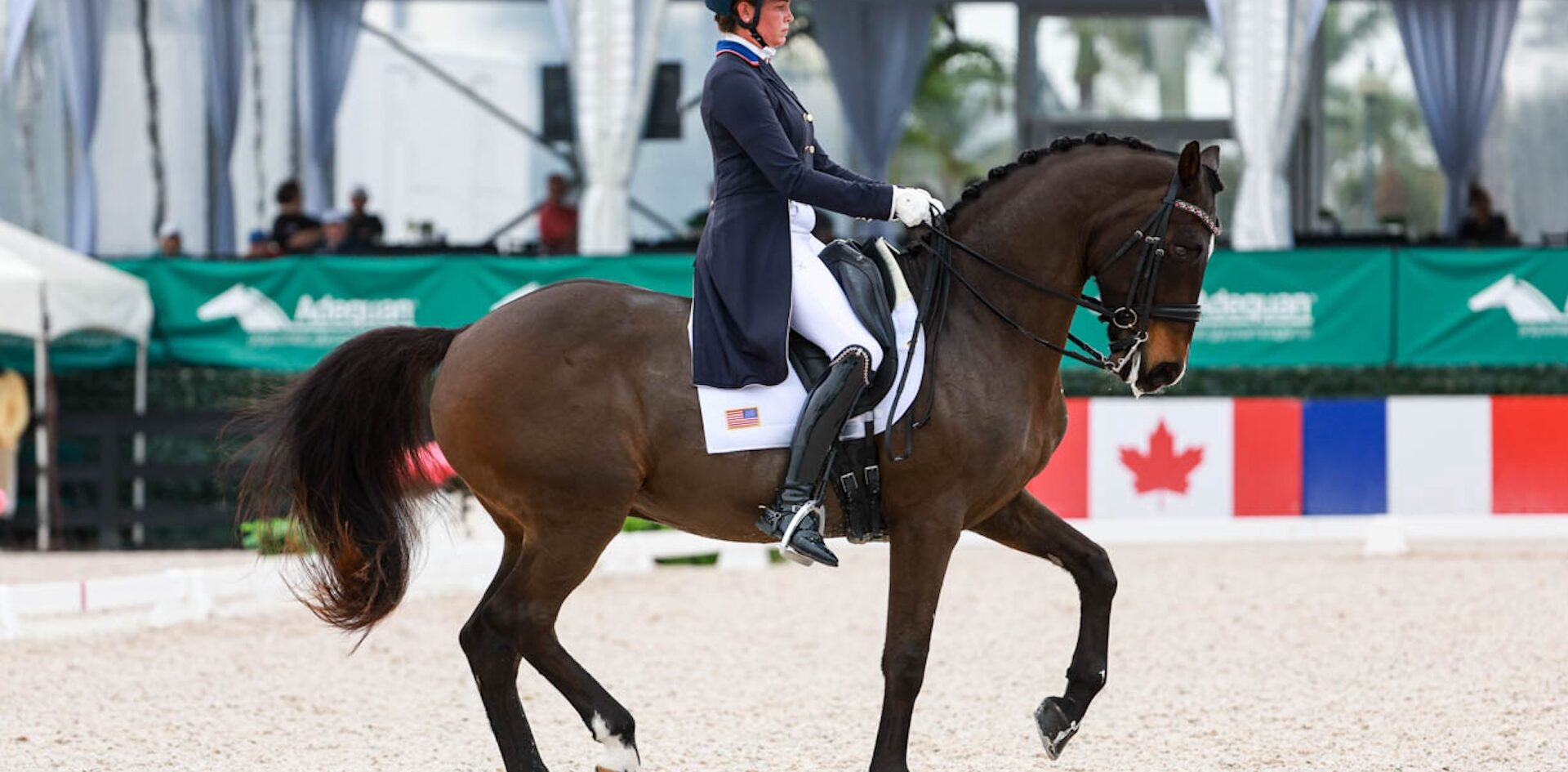 Frederic Wandres (GER) was also giving competition experience to his employer Hof Kasselmann’s Desperado NOP-sired chestnut stallion Diamor 4. The pair captured the blue ribbon in the Preliminary Test for seven-year-old horses, presented by Palm Beach Equine Clinic, with 73.55%. Fresh from the sale of her top horse Serenade, Alice Tarjan (USA) was back between the boards bringing on one of her next stars in a long string of home-produced horses. She rode her own 10-year-old Jane – another by the Vivaldi son Desperado NOP – to a 70% victory in the CDI2* Intermediate A. The black Dutch Warmblood mare is unbeaten in all 10 of her CDI starts, and has never scored below 70%. Dressage competition in AGDF1 concludes on Sunday, with Young Riders, the CDI1* Intermediate I Freestyle class and an Under-25 Grand Prix. For more information and results, visit www.globaldressagefestival.com. Click for full results from the CDI3* FEI Grand Prix Special, presented by Olympia Footing.