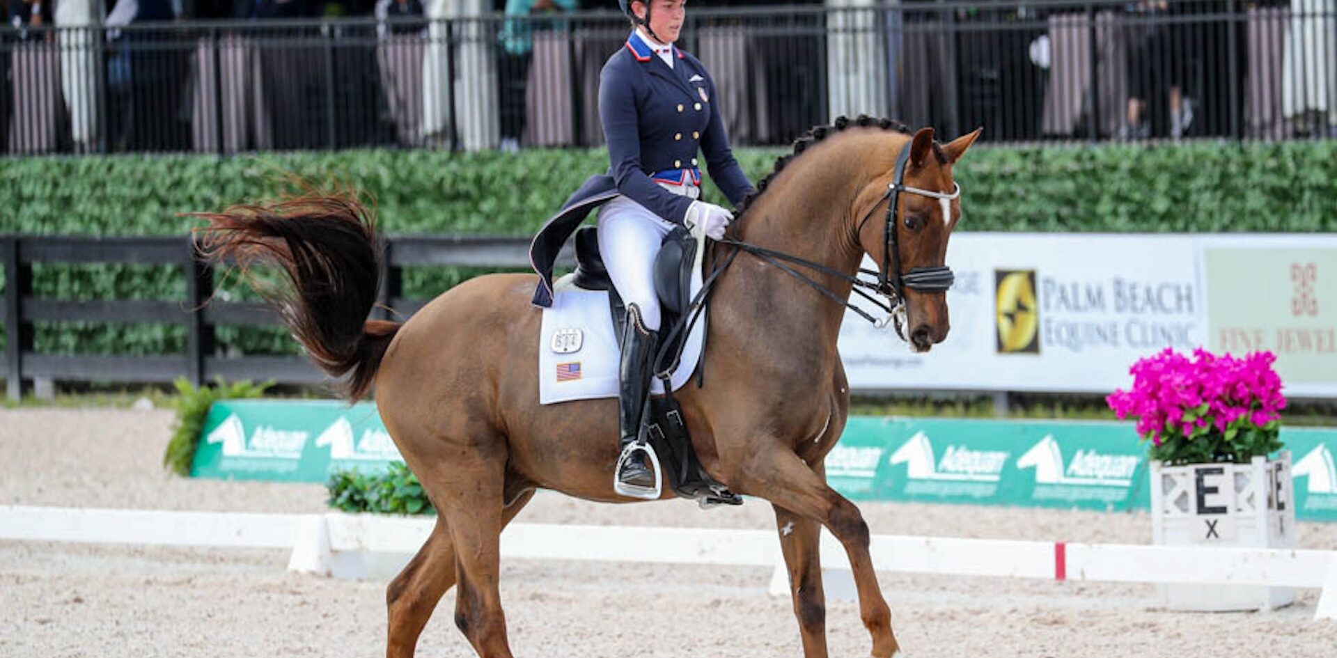 Marek describes Cynthia Davila’s Fayvel as a bit of a freak and like riding a bouncy ball . He has no thoughts other than he’s very forward and he does what you ask him to do, said Marek, of Ocala, FL. I’ve shown him quite a bit nationally and this was my third CDI on him and we had a clean ride. There were pieces of it that I could have maybe ridden a bit better, but overall I was thrilled with him and a little bit shocked and excited that he was so well rewarded. He’s a really fun, forward, honest horse to ride. His owner came to me having ridden a green I-1 and he was young, she added. I taught him the piaffe and the passage and his [adult amateur] owner hopped back on and showed him grand prix – his first grand prix, her first grand prix. If you ask it right on him, he does it. I told her, He piaffes and passages the same for you as he does for me – this is not normal!’ He just loves his job. You ask him for more and he asks how much and starts hiking his legs.