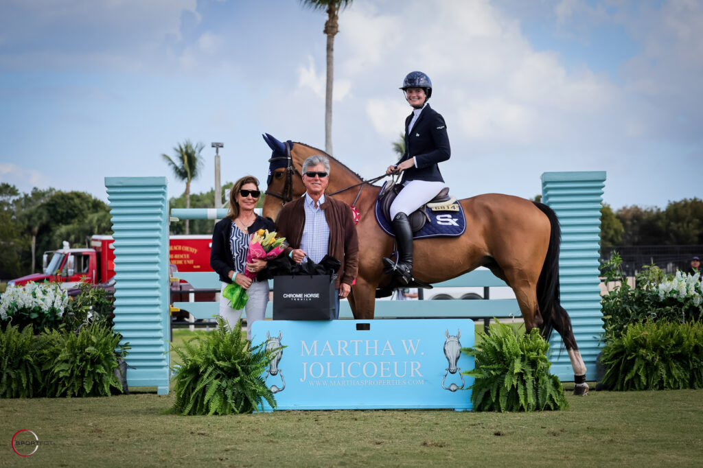 Zoe Hank Conter (BEL) rode Tombola Z to second for owner Stephex Stables. She and the 12-year-old Toulon daughter clocked in at 49.60 seconds. After consistent placings during WEF 6, Hank Conter was awarded the Martha Jolicoeur, Douglas Elliman Leading Lady Rider Award.