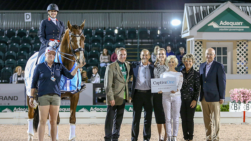For Immediate Release Deirdre Sullivan for Jennifer Wood Media, Inc. Wellington, FL – February 8, 2019 – The crowd at the Friday Night Stars at the Adequan Global Dressage Festival (AGDF) enjoyed performances by top riders in the FEI Grand Prix Special and FEI Grand Prix Freestyle CDI5* on Friday, February 8, at Equestrian Village at the Palm Beach International Equestrian Center in Wellington, FL. Brittany Fraser-Beaulieu (CAN) and All In, her 14-year-old KWPN gelding by Tango, won the FEI Grand Prix Freestyle CDI5*, presented by CaptiveOne Advisors, with a score of 76.520%.