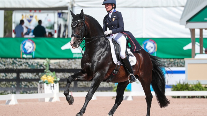 For Immediate Release Amanda Picciotto Feitosa for Jennifer Wood Media, Inc. Wellington, FL – March 19, 2022 – Week 10 of the 2022 Adequan Global Dressage Festival (AGDF) in Wellington, FL, has been nonstop action, with Saturday’s competition being no exception. As one of the last combinations to go in the FEI Grand Prix Special CDI3*, presented by Iron Spring Farm, Charlotte Jorst (USA) and her longtime partner, Kastel’s Nintendo, did what they do best and strutted to the top spot with a score of 72.936%. This penultimate week of the AGDF circuit concludes on Sunday, March 20, while the circuit continues through March 27. In a highly competitive field of 15 starting combinations for the Special, Anna Marek (USA) rode Janet Simile’s Fire Fly to a personal best 69.915% to rocket up the standings. Their score held up for quite a while until Alice Tarjan (USA) and her nine-year-old Hanoverian mare, Serenade MF (Sir Donnerhall I x Don Principe), laid down a stylish test for 70.872%. Tarjan would have to settle for second and Marek for third as Jorst and Nintendo came triumphantly down their last centerline to applause from the crowd.