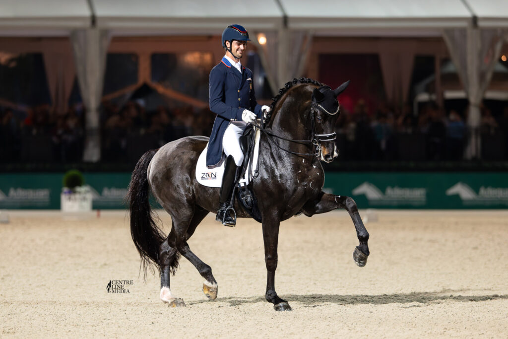 Wellington, Fla.–January 9, 2026—At just 23 years old, Christian Simonson is still well inside the eligibility window for under-25 competition. However, he blasted to the top of the leaderboard during the first Friday Night Stars evening of freestyle competition at the 2026 Adequan® Global Dressage Festival (AGDF) in Wellington, FL. With a new personal best in the IDA Development FEI World Cup™ Grand Prix Freestyle, he also booked his place to the World Cup™ Final, set for April in Fort Worth, Texas.