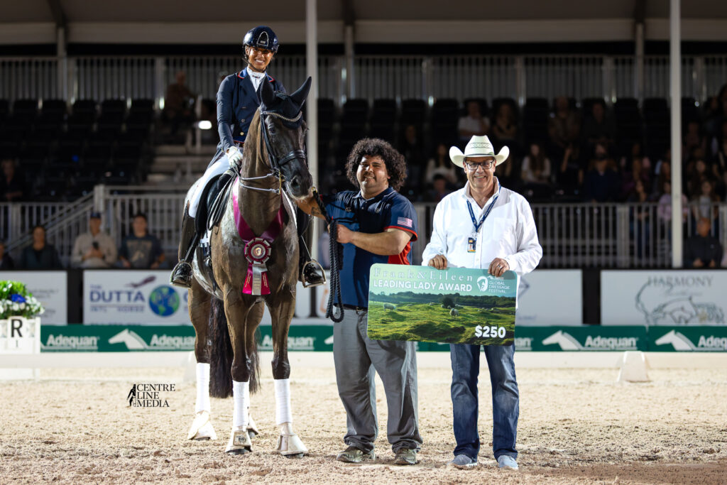 Two new awards have been introduced for ADGF 2026. Simonson is the early leader in the new Leading International Freestyle Rider standings, presented by Stillpoint Dressage. Vaughn earned the Leading Lady Freestyle Rider Award, sponsored by Frank & Eileen, a weekly presentation.