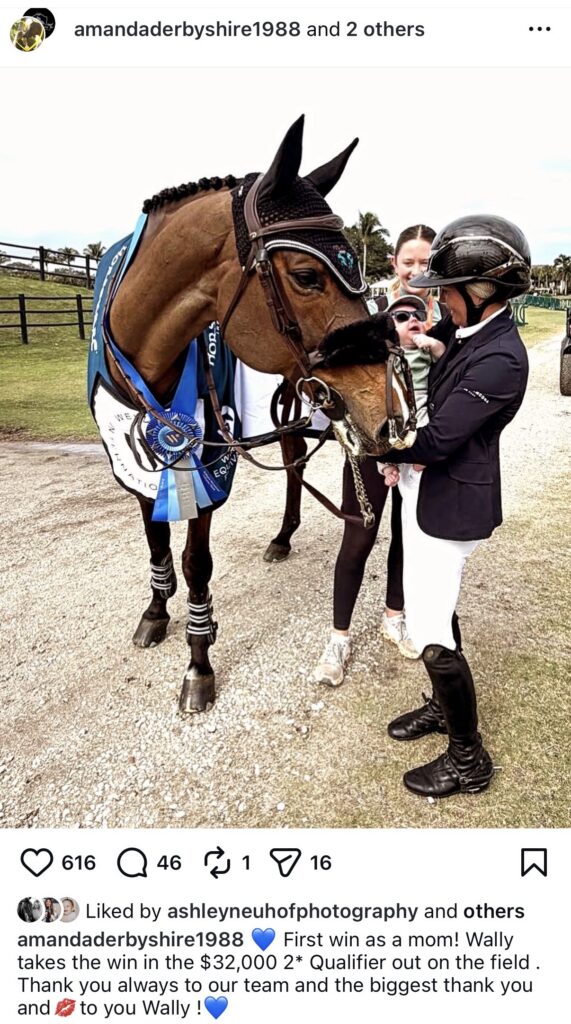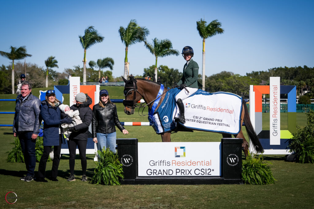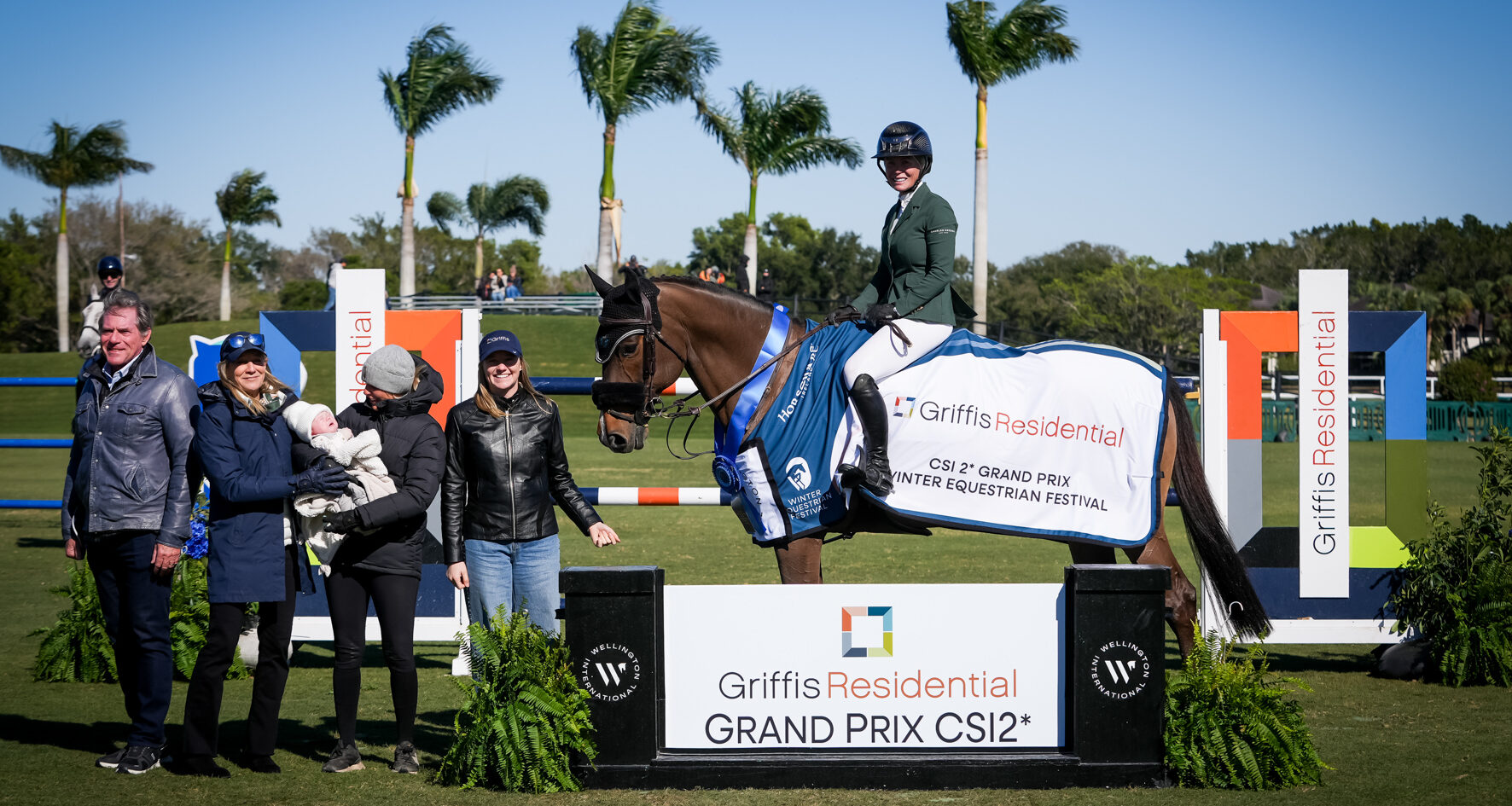 Wellington, Fla. – February 1, 2026—Less than three months after giving birth to her first child, Amanda Derbyshire (GBR) was back in the winner’s circle at Wellington International. With Max James Blake ringside to cheer on his mother, Derbyshire topped the $62,500 Griffis Residential CSI2* Grand Prix after also winning the qualifier on Friday. Both victories came aboard longtime partner Cornwall BH, owned together with Gochman Sport Horses.