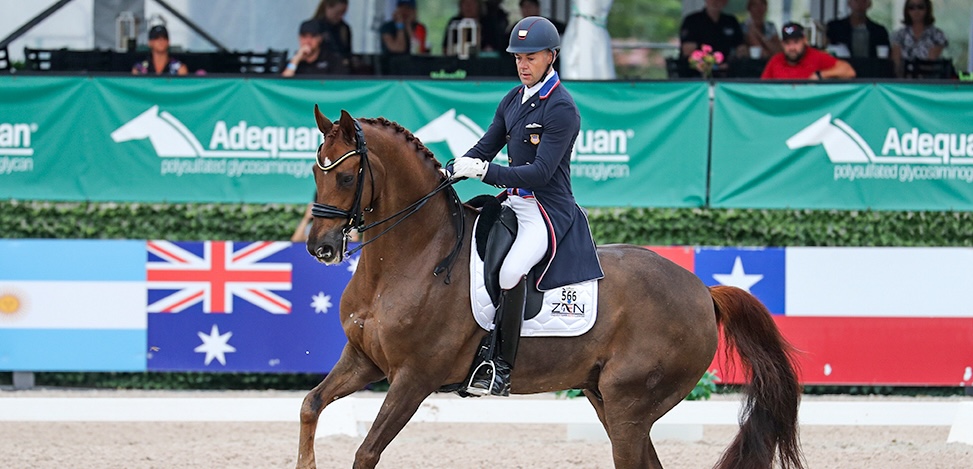 By Alice Collins for Wellington International Much-anticipated appearances by new horse-and-rider combinations-spearheaded by Endel Ots and Zen Elite’s Bohemian-were the flavor of the day on Thursday, March 28. It marked the opening day of week 12-the final CDI of the 2024 season of the Adequan Global Dressage Festival (AGDF) in Wellington, FL. AGDF, which hosts seven weeks of CDI competition, runs through March 31. In the CDI3* FEI Grand Prix, sponsored by Beatrice Marienau Dressage, Zen Elite Equestrian’s team of three new top horses filled every podium step. Owner Heidi Humphries bought the high-profile horses Bohemian, Helix and Lars Van De Hoenderheide for the U.S. riders Endel Ots and Olympic team silver medalist Adrienne Lyle at the end of 2023, and this was the first CDI appearance for all three.
