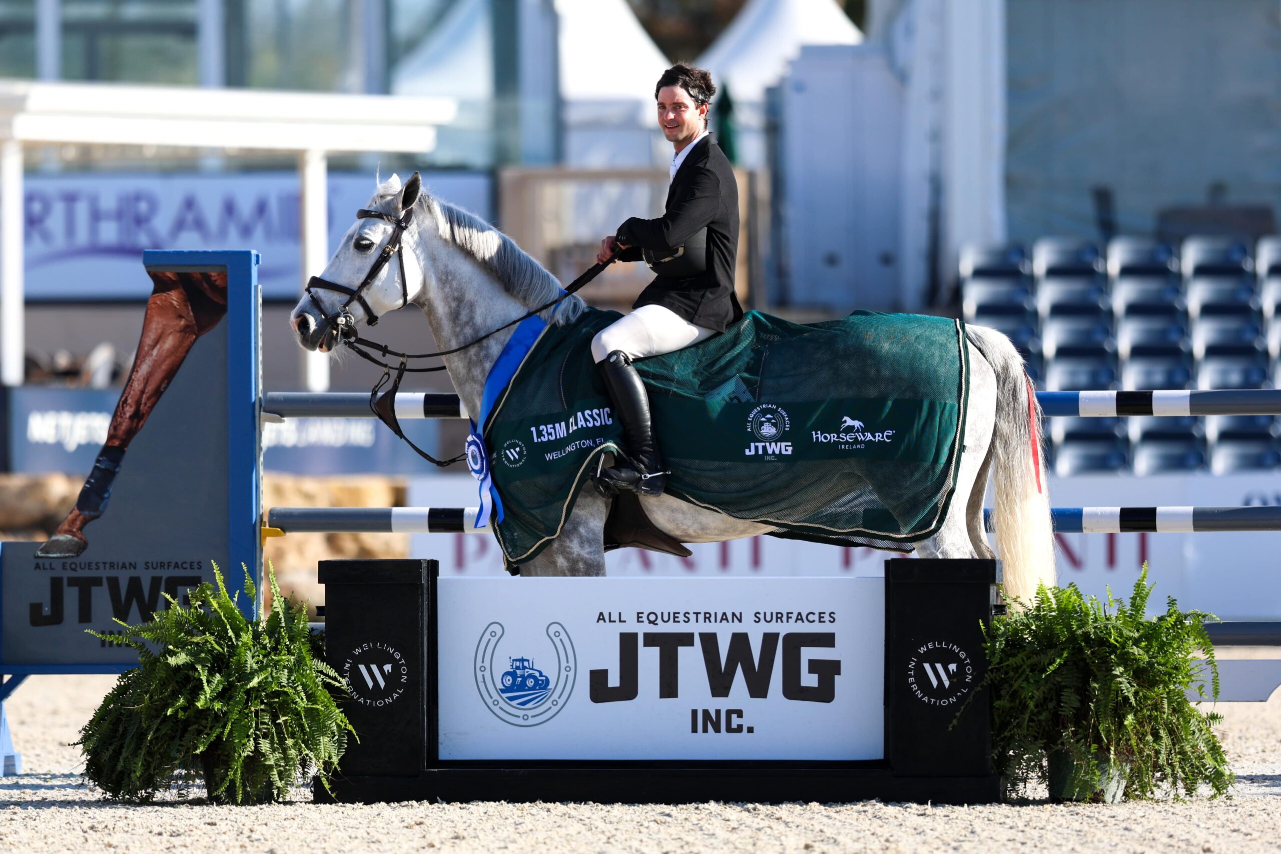 Luis Fernando Larrazabal and “Cenmietta PS” presented as winners of the $5,000 JTWG Inc. 1.35m Open Stake © Wellington International // Cassidy Klein