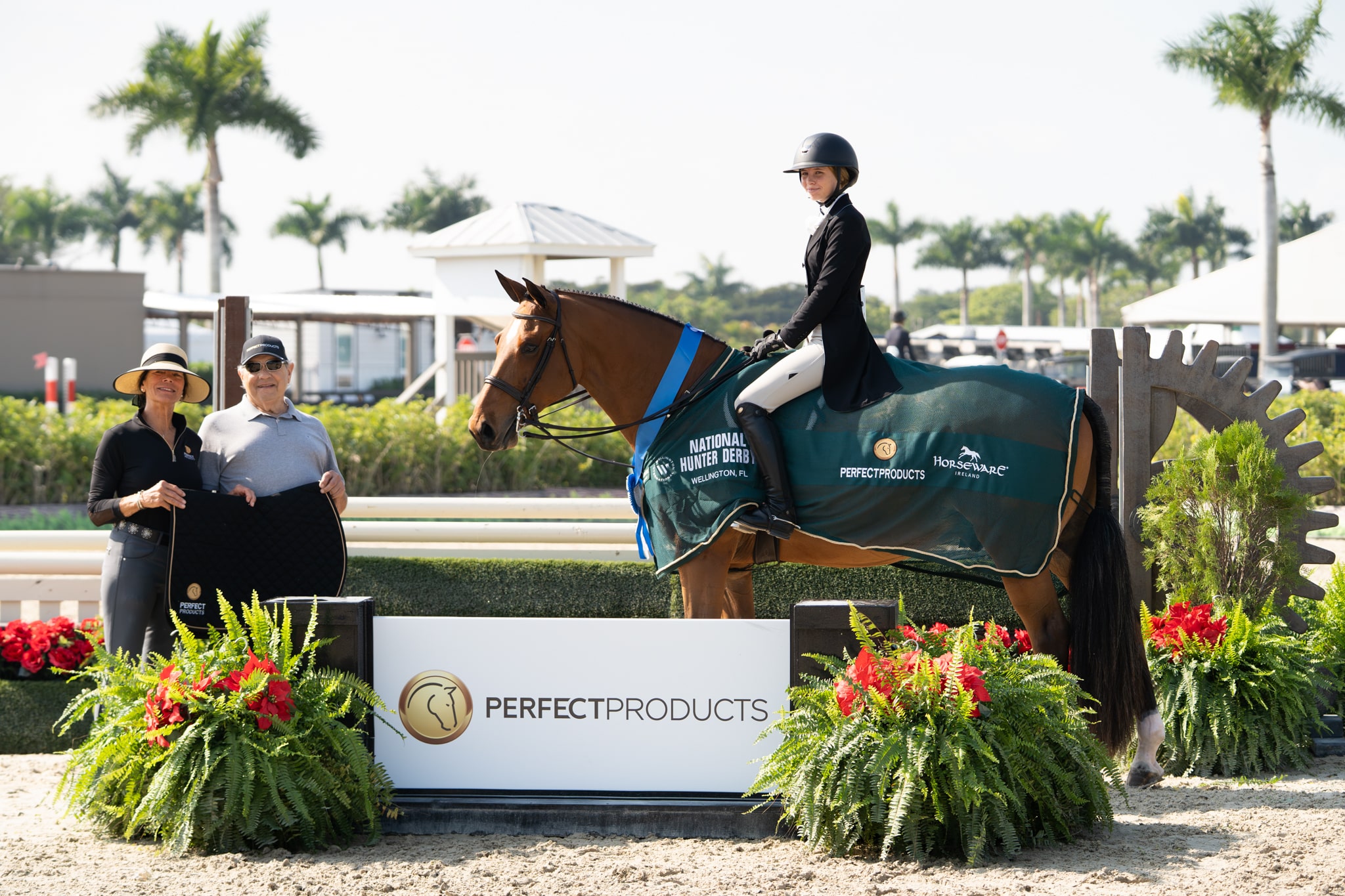 Elizabeth Rinehart and “Talk” presented as winners of the $5,000 USHJA National Hunter Derby (Hunt-N-Go), presented by Perfect Products © Wellington International // Grace Klement