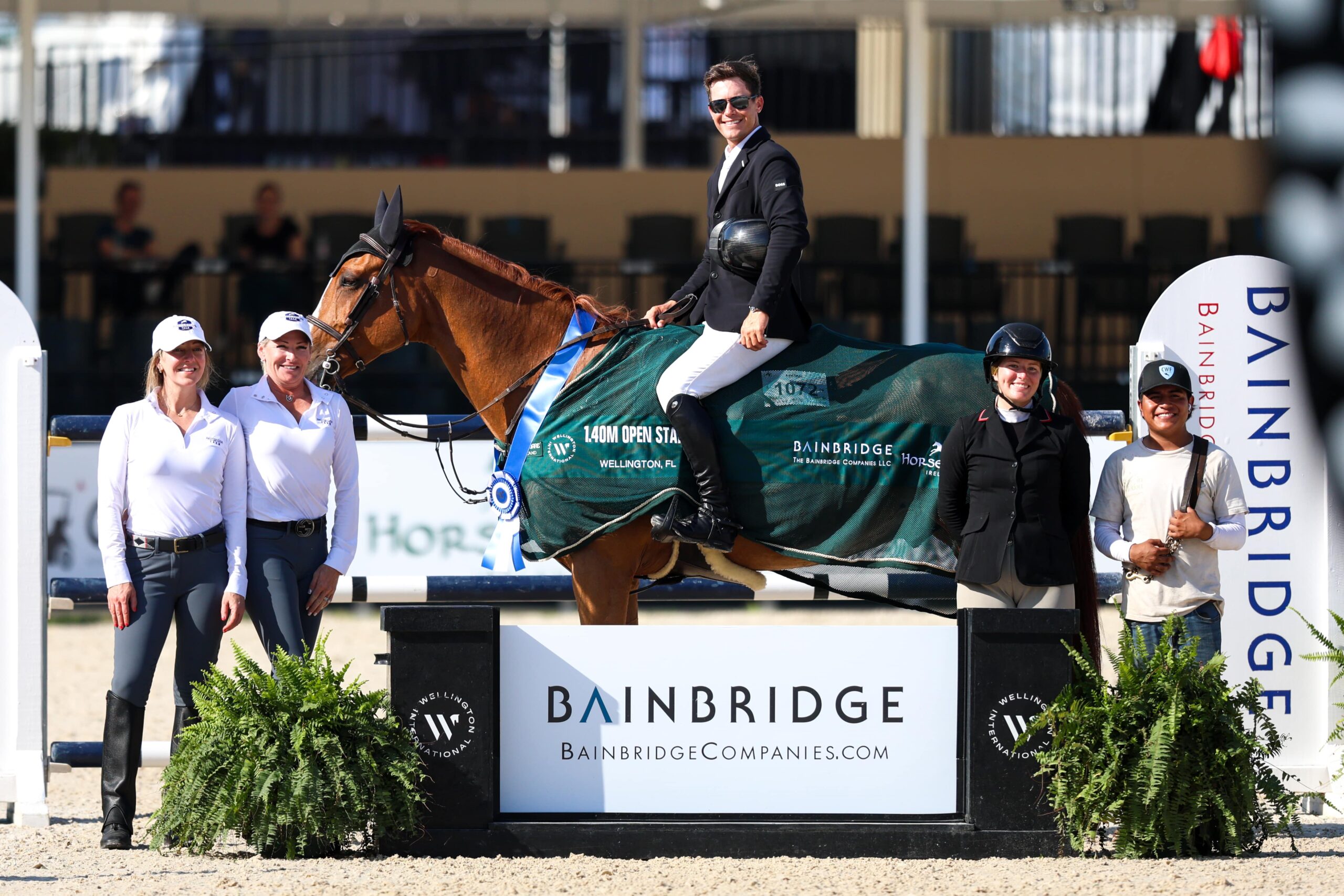 Tanner Korotkin & “Cardozo 4” presented as winners of the $10,000 Bainbridge Companies 1.40m Open Stake © Wellington International // Cassidy Klein