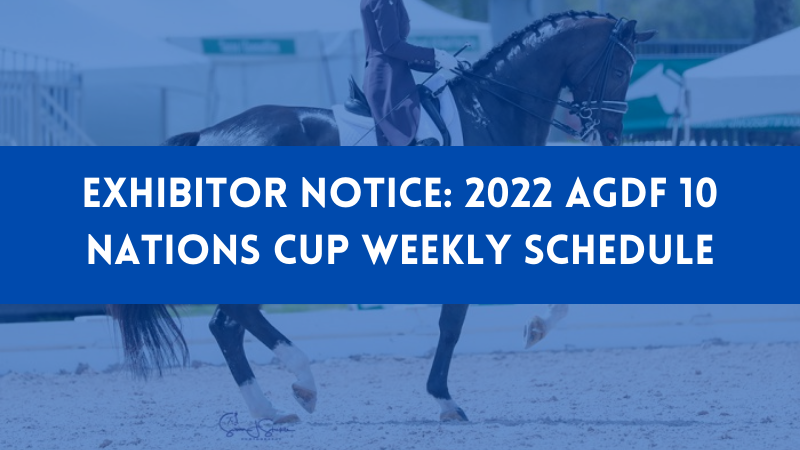 EXHIBITOR NOTICE: 2022 AGDF 10 Nations Cup Weekly Schedule