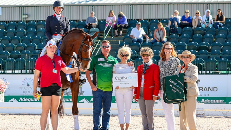For Immediate Release Deirdre Sullivan for Jennifer Wood Media, Inc. Wellington, FL – February 7, 2019 – Week 5 of the Adequan Global Dressage Festival (AGDF) started on Thursday, February 7, with CDI5* dressage competition at the Palm Beach International Equestrian Center in Wellington, Florida. The week features the Friday Night Stars on Friday, February 8, with the FEI Grand Prix Special CDI5*, presented by the Palm Beach Equine Clinic and the FEI Grand Prix Freestyle CDI5*, presented by CaptiveOne Advisors. Brittany Fraser-Beaulieu and All In Sparkle With Win in the FEI Grand Prix CDI5* Brittany Fraser-Beaulieu (CAN) and All In won the FEI Grand Prix CDI5, presented by CaptiveOne Advisors, to qualify for the five-star freestyle on Friday night. The pair earned a score of 71.304%.