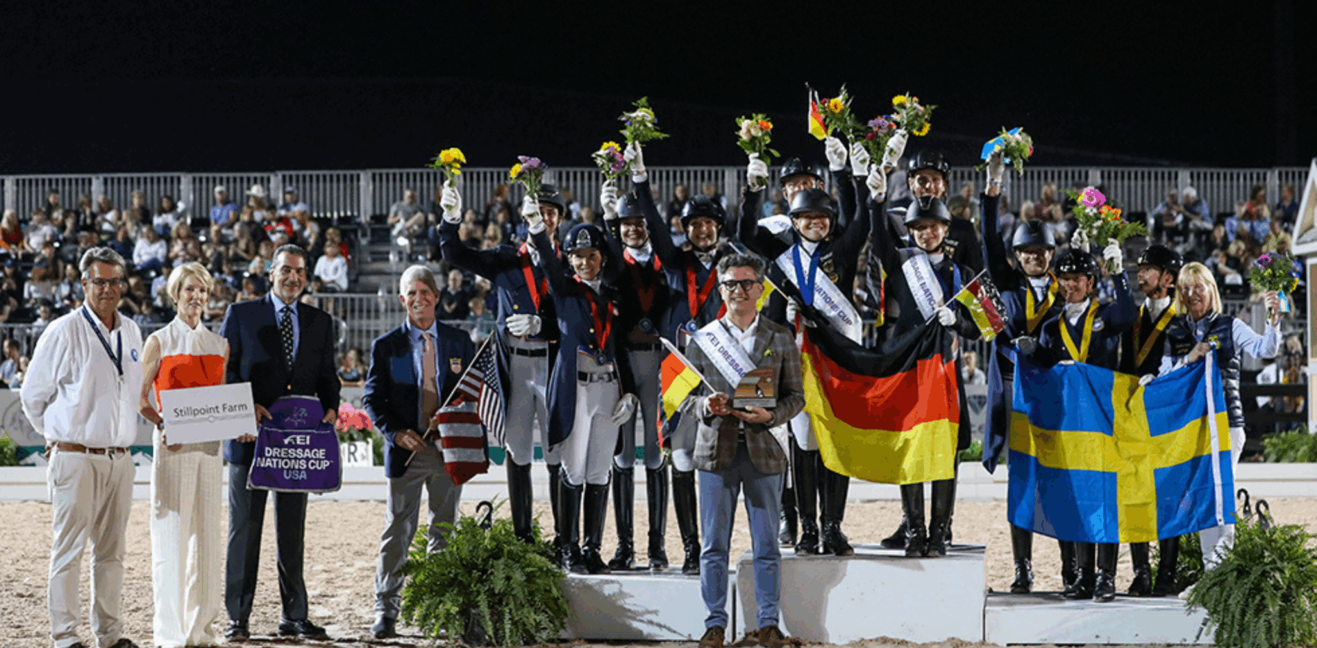 By Alice Collins for Wellington International For the third consecutive year, it was Germany whose national anthem rang out at the conclusion of the Stillpoint Farm FEI Nations Cupo contest in Week 7 of the Adequan Global Dressage Festival (AGDF) in Wellington, Florida. AGDF 2023, which hosts seven weeks of CDI competition over three months, runs through April 2.