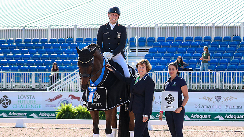 Female American athletes filled the four spots behind Wandres, with Anna Buffini riding her own FRH Davinia La Douce into second, closely followed by Ashley Holzer on Diane Fellows’s Havanna 145. Wandres’s winning ride, Bluetooth, has been with him for a year, having been previously ridden by German Olympic team gold medalist in eventing, Ingrid Klimke. Owners Elena Knyaginicheva and Sergey Knyaginichev bought the powerful and elegant Oldenburg gelding at the PSI Auction for €1million as a three-year-old. This is the horse’s first trip to Florida. Click to watch Frederic Wandre’s winning test. (C) Richard’s Equine Video Last season I figured out that all the horses who came here and did the season took a lot of experience home with them, which was a big plus for all of them, said Wandres. I’m looking forward to the same with Bluetooth.