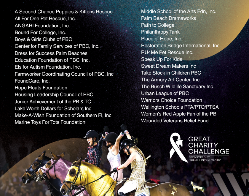 The Great Charity Challenge sponsored by Fidelity Investments® (GCC) is proud to announce the first thirty (30) Palm Beach County non-profits selected for the 17th annual event, returning to Wellington International on Saturday, January 31, 2026.