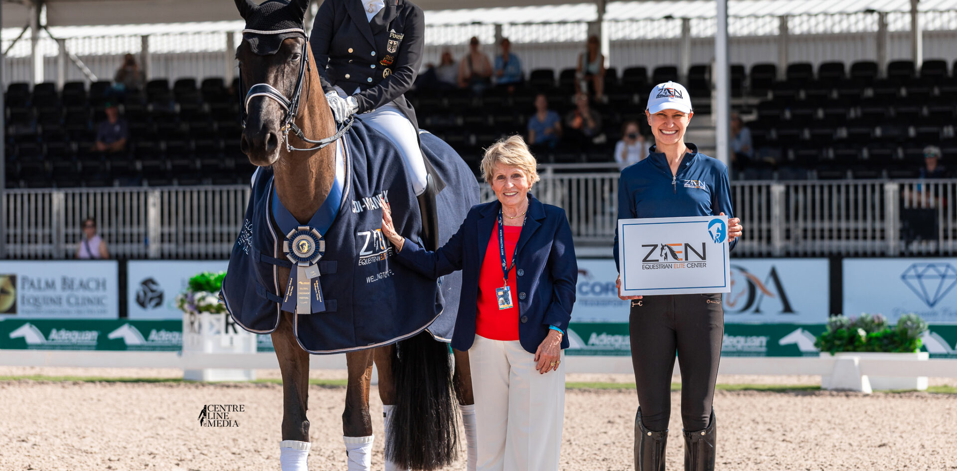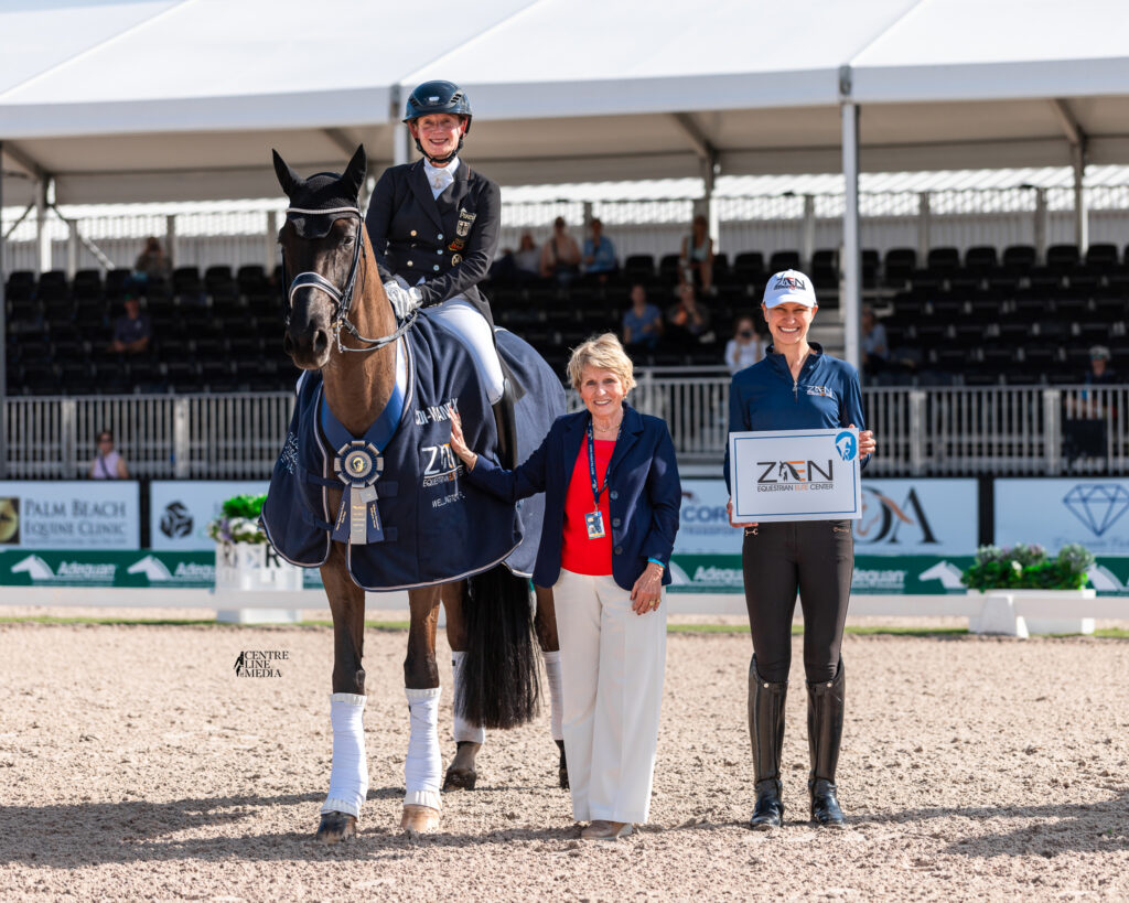 The class was a qualifier for the Zen Elite Equestrian CDI3* Grand Prix Freestyle to be held during “Friday Night Stars”. The special gala event will host a stallion demonstration, including appearances from My Vitality, One Million, Zaunkönig, Fortunato H2O OLD, Rosebank VH, Fleau De Baian, and pony stallion Branley Ash Nautilus. There will also be live music from a Grammy Award-winning artist, whose identity is being kept under wraps.