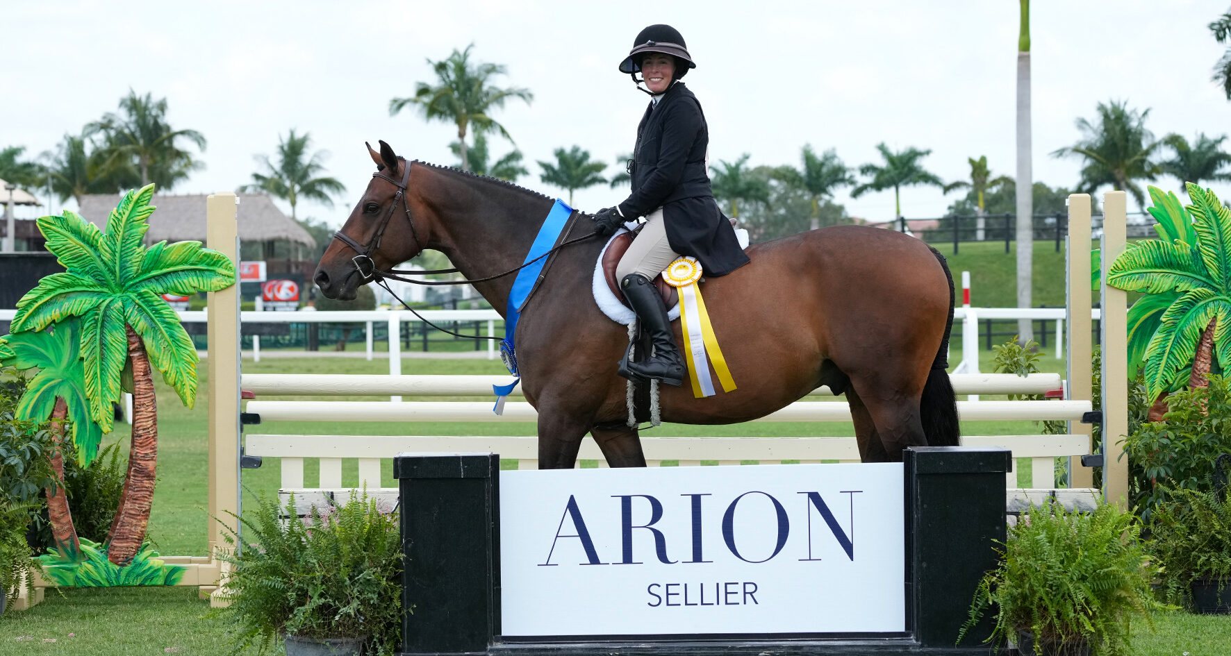 On Saturday, six combinations entered the ring to compete for top honors in the $1,000 SAS Photography 2’6″/2’9″ Hunter Derby. Riding to the top of the leaderboard, Samantha Karp of Wellington, FL, and Cascadel, owned by Mak Capital LLC, were awarded top honors thanks to their superb performance. Isabela De Sousa of Lexington, KY, piloted Sergent Stables, LLC’s GFS Mikado to a runner/up finish, followed by Olivia Johnson of Boynton Beach, FL, and Quintessential, owned by Equine Health & Fitness.