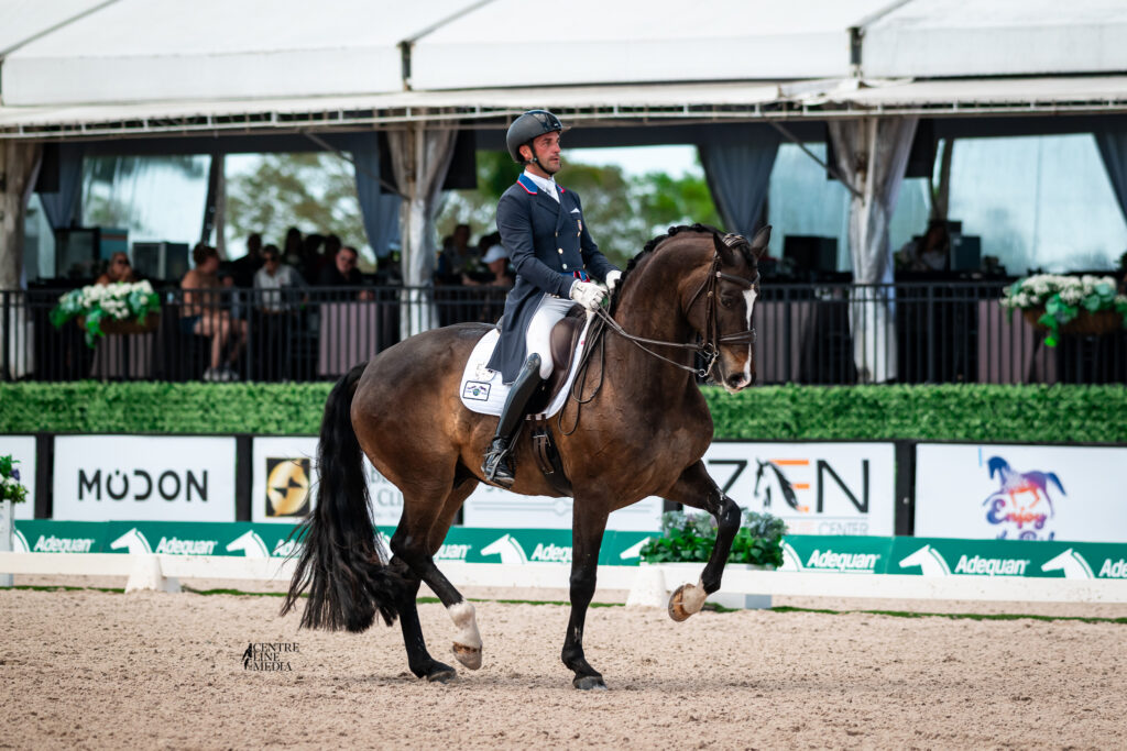 Wellington, Fla. – March 21, 2026—Jordan LaPlaca threw his arms in the air and hugged Gold Play after their final salute in the Modon FEI Nations Cup CDIO3* Grand Prix Special. He was justifiably delighted with his own and Nancy Huton’s 11-year-old, for the Grey Flanell x Sir Donnerhall II gelding had just sealed a double of gold medals for LaPlaca on the U.S. rider’s senior team debut. Their individual glory followed team gold on Thursday of Week 11 at the 2026 Adequan® Global Dressage Festival (AGDF) in Wellington, FL.