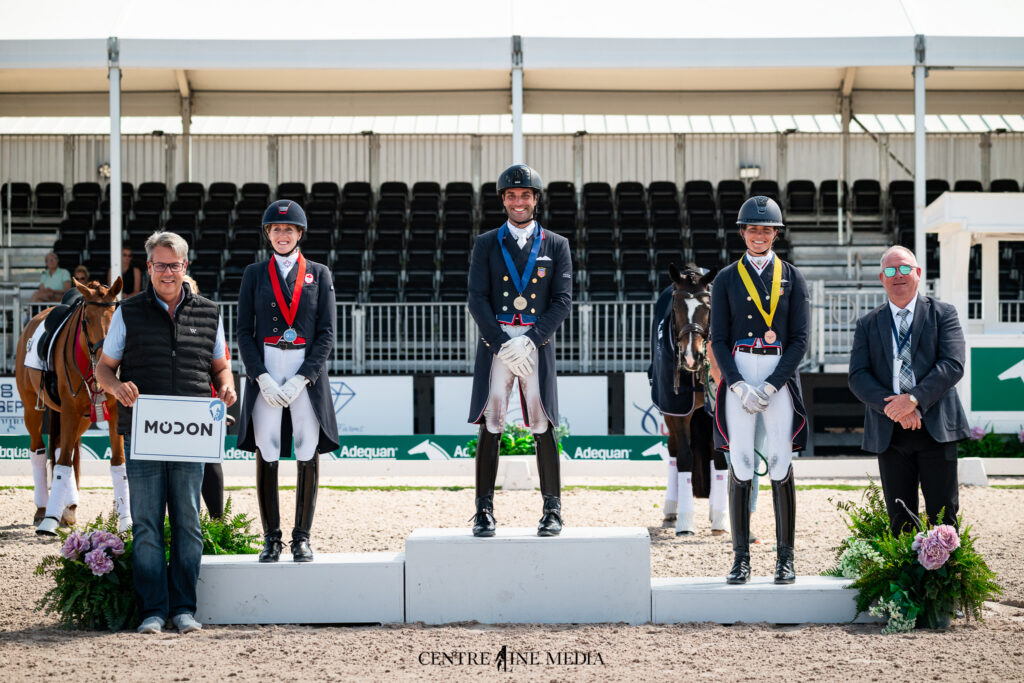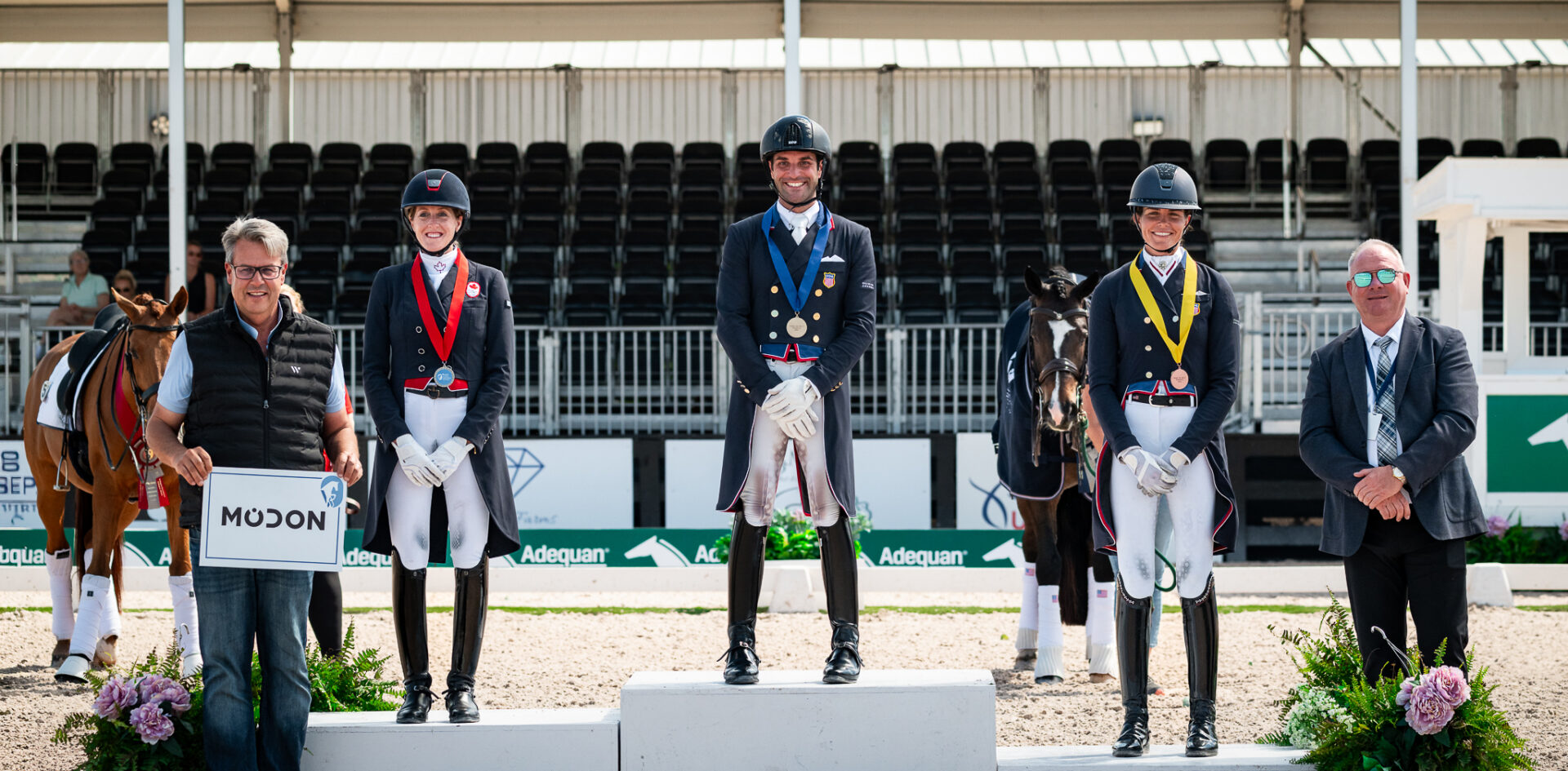 Jordan LaPlaca, Brittany Fraser-Beaulieu and Anna Marek on the podium for the Modon FEI Nations Cup CDIO3* Grand Prix Special. Photo ©Centre Line Media
