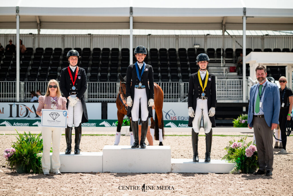 Alicia Berger, Allison Nemeth and Sophia Schults on the all-American podium for the Diamante Farms CDIOU25 Grand Prix Freestyle. Photo ©Centre Line Media