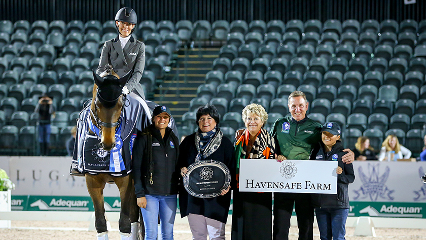 For Immediate Release Alice Collins for Jennifer Wood Media, Inc. Wellington, FL – March 16, 2018 – Olivia LaGoy-Weltz (USA) and Lonoir chalked up their fifth win from six starts at the 2018 Adequan Global Dressage Festival (AGDF) by taking the Grand Prix Freestyle CDI4*, presented by Havensafe Farm. Their resounding score of 76.6% in week 10 of AGDF at Palm Beach International Equestrian Center (PBIEC) in Wellington, Florida, was a personal best for the pair, whose previous high freestyle score was 74.425%, achieved in Aachen in July 2017.