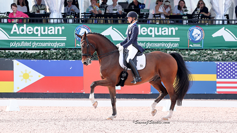 Regarding the future and her goals, Graves said, “I really hope to qualify for the FEI World Cup Finals. Hopefully because it is so close, we can make it happen this year!” Placing second was Tinne Vilhelmson-Silfven (SWE) and Paridon Magi, a 2003 Swedish Warmblood gelding (Don Primero x Napoli x Napoleon 625) owned by Lovsta Stuteri, with a 75.080%. Third place was awarded to Charlotte Jorst (USA) and mount, Kastel’s Nintendo, a 2003 Dutch Warmblood stallion (Negro x Rodieni R x Monaco) owned by Kastel Denmark, with a 73.080%.