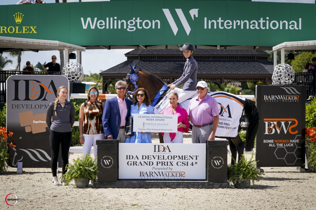 Lillie Keenan & Agana van het Gerendal Z, are presented by winners of the $200,000 IDA Development CSI4* Grand Prix, presented by Barnwalkers, by Bobbi Rottman, Owner of Eques Solutions, and Chloe Reimer representing IDA Development. Photo ©Sportfot