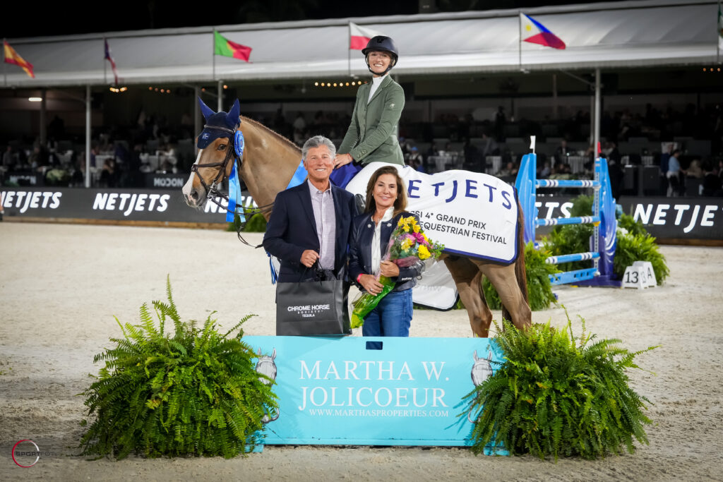 Wellington, Fla. – January 24, 2026—In front of a home crowd, USA’s Lillie Keenan and longtime partner Fasther took flight in a jump-off brimming with horse and rider talent to win the $215,000 NetJets CSI4* Grand Prix, highlighting Saturday Night Lights during Week 3 at Wellington International’s Winter Equestrian Festival (WEF).