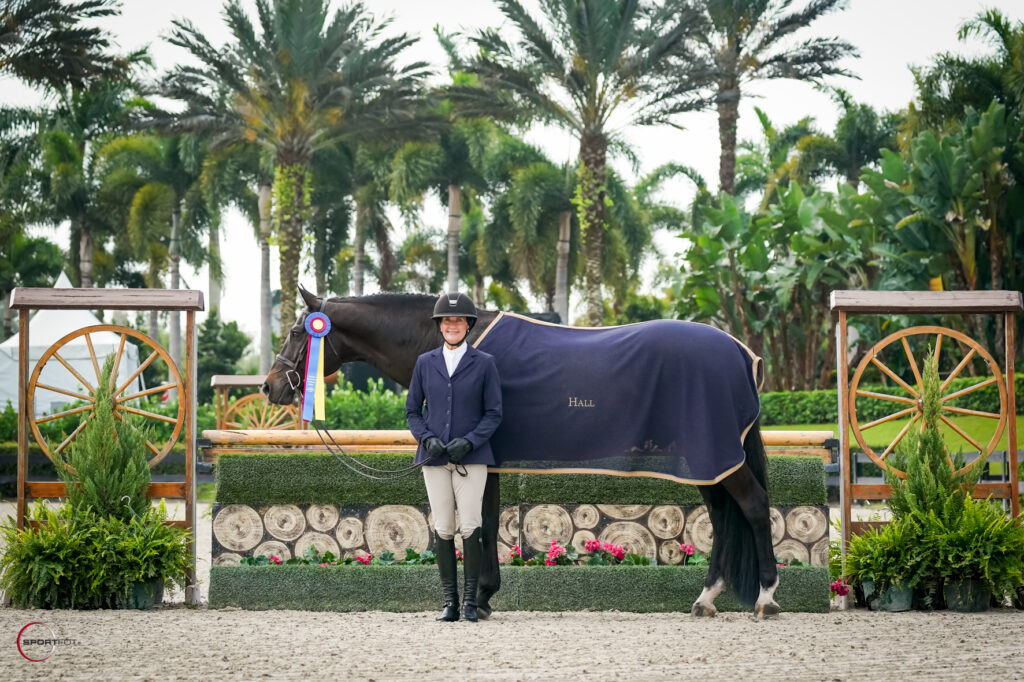Allyson Hall & Customized, champions of the Hemp Bedding 3’3″ Amateur-Owner Hunter 36+ division. Photo ©Sportfot