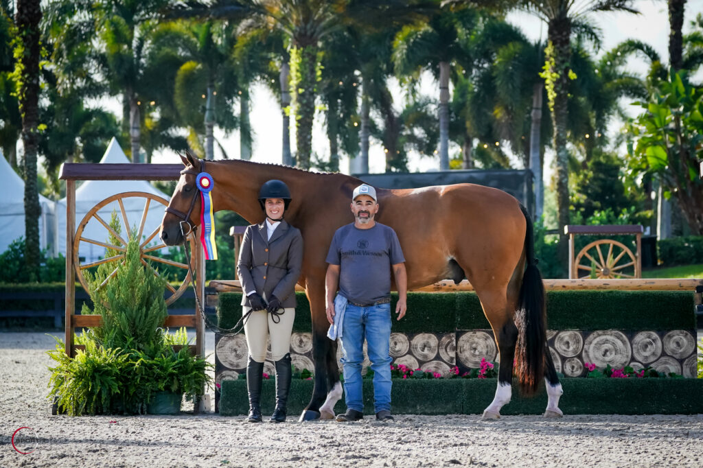 Keenan is piloting Electrique for her student and the horse’s owner, Isabel Coxe. “I show her in order to give Izzy the best instruction I can—I competed Electrique during Premiere Week of WEF, and it set us up well for them to be able to grow a lot in the season. That recipe seems to work for our system,” said Keenan of the mare that has already competed up to the five-star level. “The priority is that they develop a relationship and a bond, and see how far they can go together, but the horse is exceptional.”