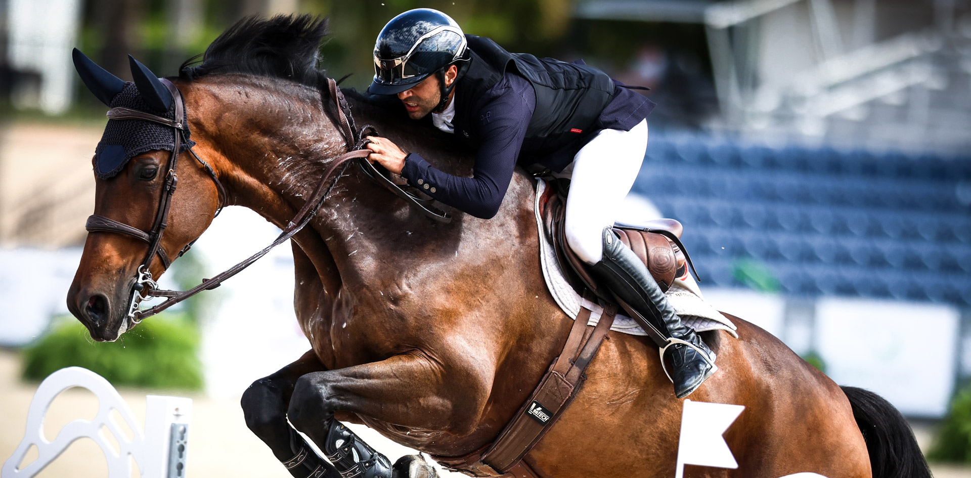 Saturday’s schedule kicked off with high/speed competition in the $5,000 1.35m Open Stake, sponsored by ProElite. Last to enter the ring, Juan Jose Bancalari Elmudesi (DOM) and Fraxinus Des Coeuries, owned by himself, clinched the win with an expertly ridden double/clear time of 34.683 seconds. Spain’s Gonzalo Busca Roca and Quicksilver C, owned by Stransky Mission Farm & Kalany Stables LLC, claimed second in 35.108 seconds, while Lebanon’s Jad Dana and Donald Stewart’s C’est Jens secured third with a clean effort in 36.403 seconds.