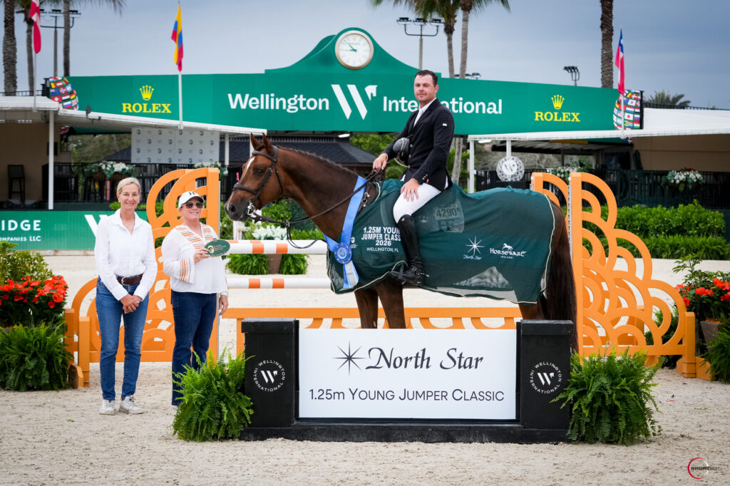 Ireland’s Cormac Hanley won the 2025 5-Year-Old Young Jumper Final with Pavarotti van de Schutskooi at WEF and returned a year later to do the same in the North Star 1.25m Young Jumper Final for 6-year-olds on Friday.