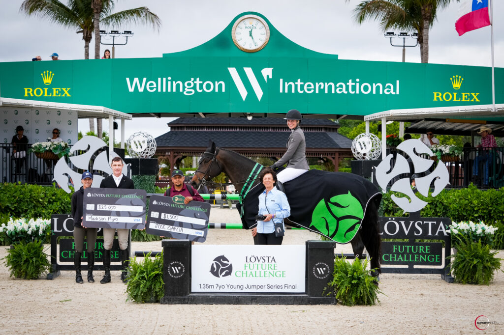 Wellington, Fla. – March 14, 2026—The future of show jumping was shining bright on Friday at Wellington International with Young Jumper Finals for horses aged 5- to 7-years-old taking to the International Arena to highlight Week 10 at the 2026 Winter Equestrian Festival (WEF). In the featured $25,000 Lövsta Future Challenge 1.35m Young Jumper Final for 7-year-olds, Madison Myro (USA) and Titaness P vd Donkhoeve, a Belgian Warmblood mare owned by LMW Sporthorses, LLC, took top call after an uncatchable jump-off.