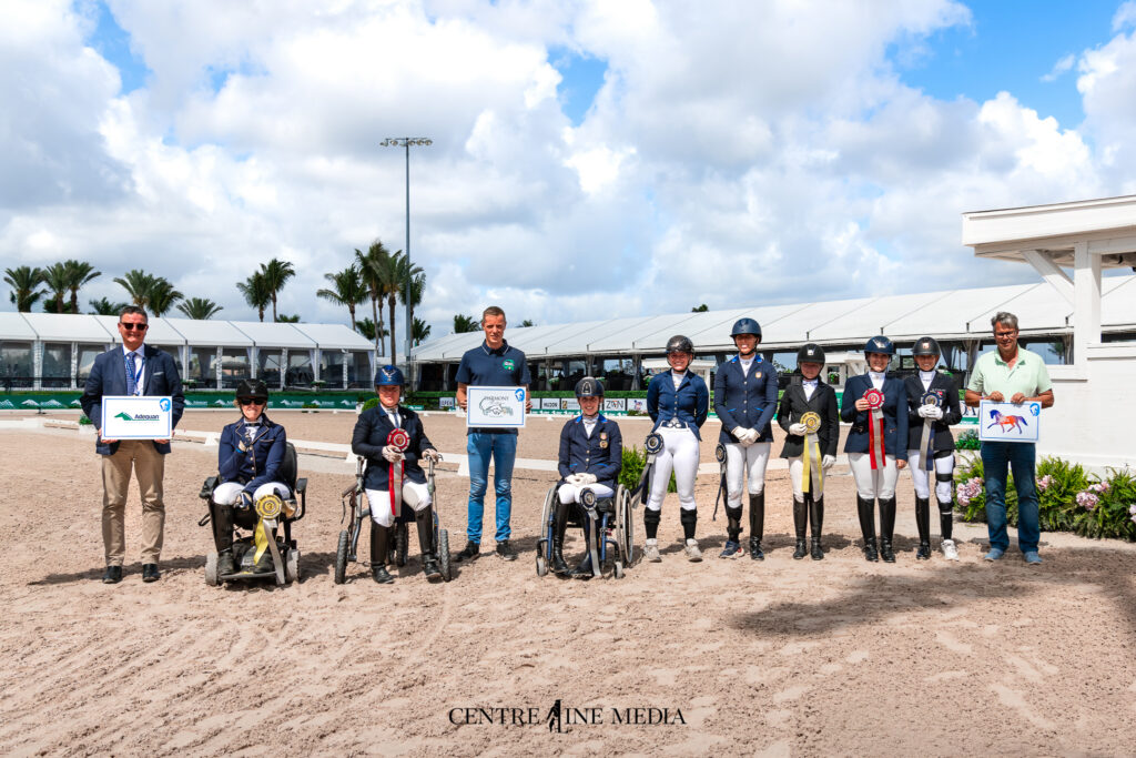 Wellington, Fla.—March 9, 2026—The all-female, all-conquering U.S. Para Dressage Team bagged the gold medal in the Week 9 CPEDI3*, presented by Harmony Sporthorses, Mission Control and Adequan®, at the 2026 Adequan® Global Dressage Festival (AGDF) in Wellington, FL. Spearheaded by record-breaking scores from the freshly minted Grade II combination of Fiona Howard and Vianne, the team laid down a total of 446.238 points to second-placed Canada’s 389.503 points. The U.S. team was led by U.S. Para Dressage Chef d’Equipe and Technical Advisor, Michel Assouline, along with Team Leader Laureen Johnson.