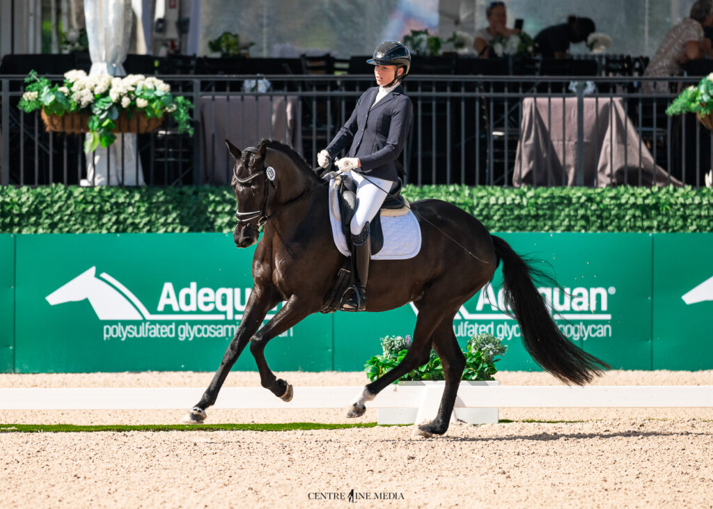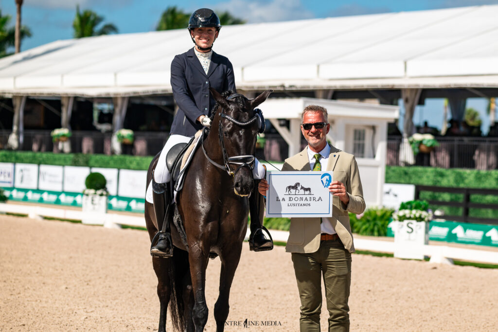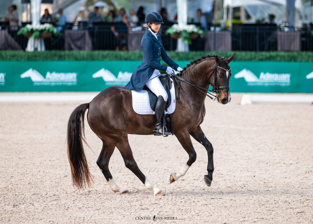 I had a really good feeling today,” she continued. “She’s always been good with the atmosphere, but her rideability was much better today. I absolutely love the opportunity to ride in this amazing atmosphere in front of CDI judges. Where else does one get an opportunity like that? It’s fabulous to recognize the young horses and their development.”