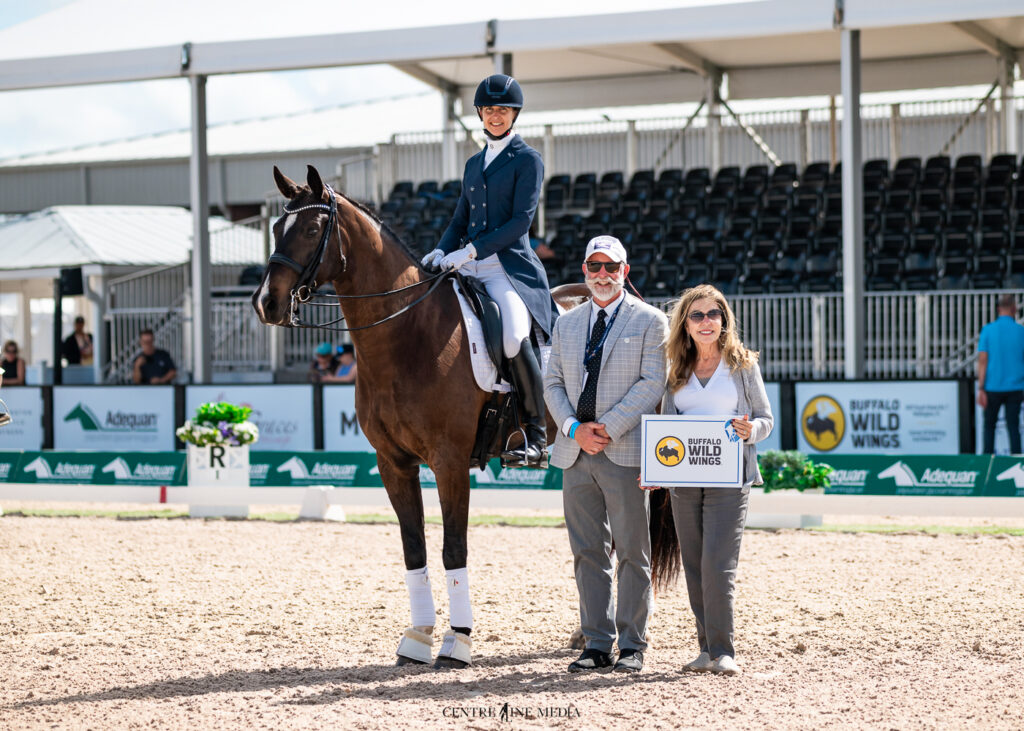 Neve Myburgh & Firiet are presented as winners of the Buffalo Wild Wings Prix St. Georges Future Challenge. Photo ©Centre Line Media