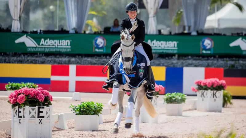 This month’s Rider Spotlight feature goes to American rider, Kerrigan Gluch! As a young child, Kerrigan’s mother enrolled her in 4-H, where she tried many disciplines, but was most enticed by the challenge of mastering a test and having new goals with every level of dressage. When she was 14, Kerrigan had the opportunity to clinic with Robert Dover in Wellington. The opportunity would prove to be a turning point in Kerrigan’s riding career. There, she was introduced to Kimberly Van Kampen, who immediately noticed the junior’s talent, and offered to let her show her horse during the winter season. The following winter, Kerrigan packed her bags and left her life in Michigan behind to take a full-time working student position with Van Kampen at Hampton Green Farm to pursue dressage seriously. Kerrigan already has many accomplishments under her belt. To name a few, she achieved both Young Rider and U25 Reserve National Championship distinctions, several U25 Nations Cup team medals, and has represented the United States in Europe twice. Continue reading to learn about Kerrigan’s newest partner, Mejorano HGF, her goals for the remainder 2023 and 2024, and so much more!