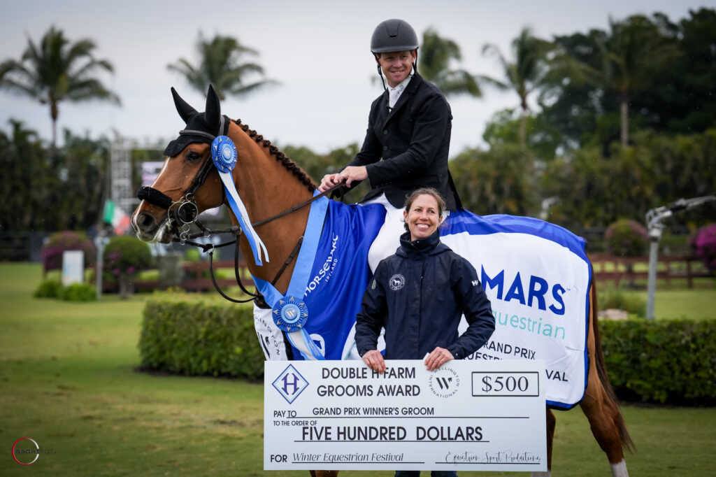 “He’s a funny character; very smart, not spooky but quite sharp about his surroundings,” continued Sweetnam, whose groom Maria Israelsson, was honored with the Double H Farm Grooms Award and $500 prize for her care and preparation of Coriaan van Klapscheut Z.