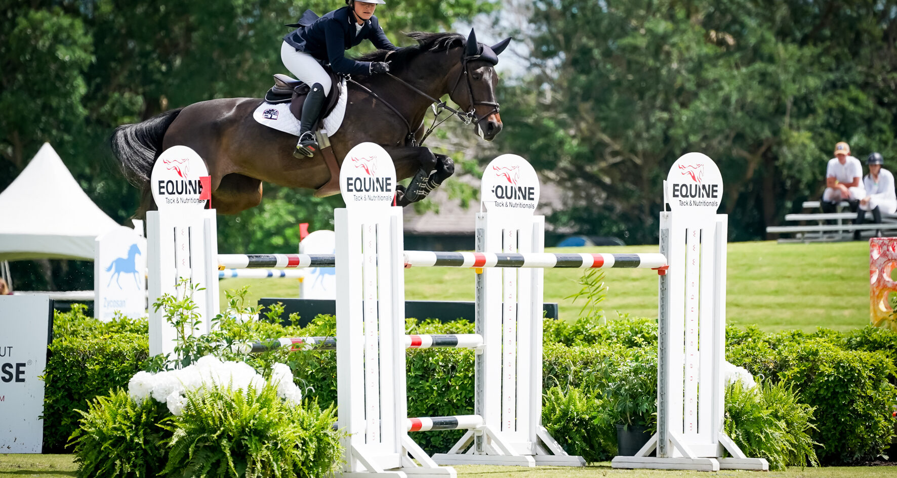 Based out of Ocala, FL, Reid admits that her home farm plays a big role in her horses’ performance, “I don’t have a sand ring at home, so I ride every day on grass. I think they’re used to it—they’re outside eight hours a day. I like to think that they feel back to their roots and are so happy out there.”