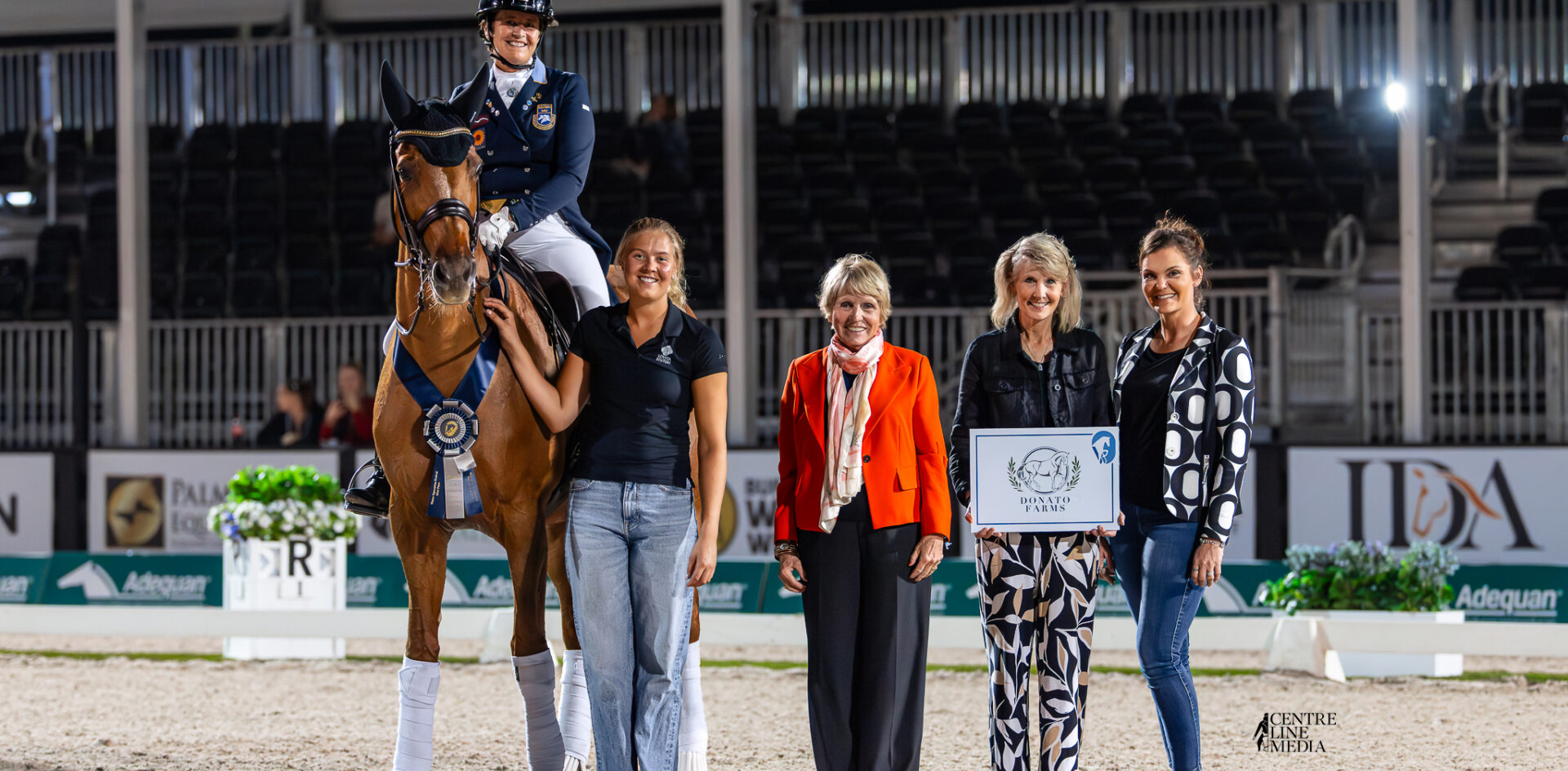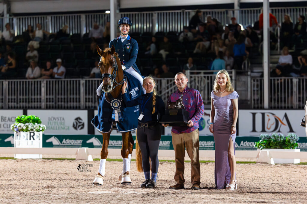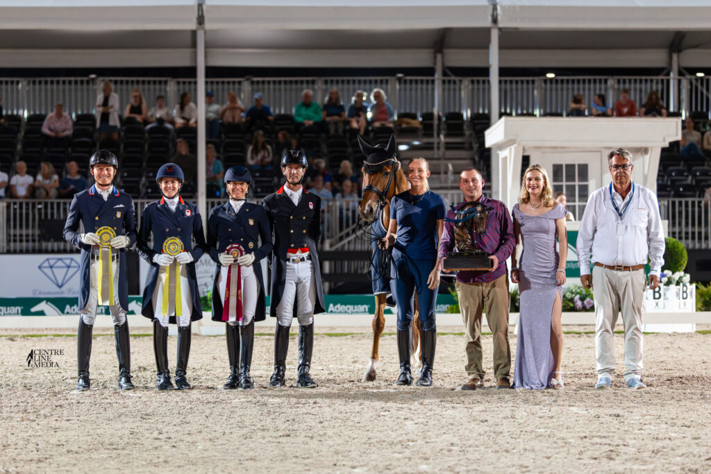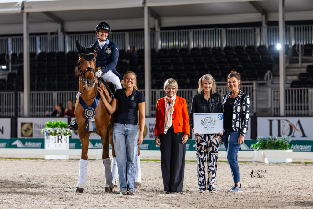 Tinne Vilhelmson Silfvén & Hyatt are presented as winners of the Donato Farms CDI4* Grand Prix Freestyle. ©Centre Line Media