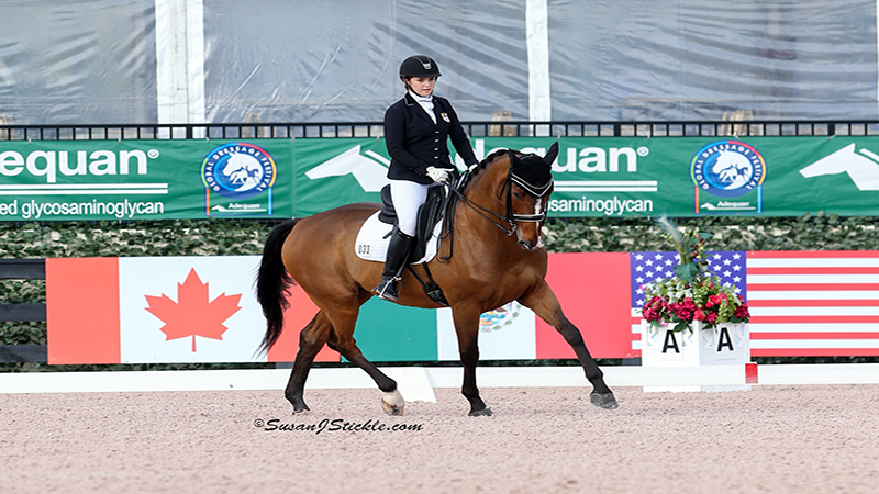 Margaret McIntosh, who earned reserve high point honors behind Rebecca Hart, competed as an individual throughout the competition and was pleased with the progress of her nine-year-old mare aptly named, Rio Rio. The duo earned scores of 72.754%, 72.899%, and 73.917% respectively, to finish one of their best career competitions together. “She typically is very relaxed on the ground and in the show arena, but I was really delighted today to have a little bit more zip going on,” she laughed. “I believe that the atmosphere here contributed a lot at the beginning of the competition, but it served as a great opportunity for people to learn how to deal with that added atmosphere that you find more often in Europe.” The Adequan Global Dressage Festival is proud to host and support the dreams of Para-Dressage athletes from across North America. Both competition and facility management look forward to hosting Para-Dressage competitions in the future at the PBIEC venue. “Thank you to the riders, owners, grooms officials, and sponsors for a wonderful week of competition. I think without the sponsors we could not have done what we accomplished this week and what we’re looking forward to doing it again in two weeks time,” said Thomas Baur, Director of Sport for the Adequan Global Dressage Festival.