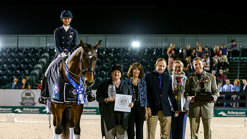 For Immediate Release Deirdre Sullivan for Jennifer Wood Media, Inc. Wellington, FL – March 1, 2019 – The Friday Night Stars FEI Grand Prix Freestyle CDI-W presented by Havensafe Farm ended a day of top dressage competition with a sweep of the top three places by U.S. women at week 8 of the Adequan Global Dressage Festival (AGDF), which continues through Sunday, March 3. AGDF runs until March 31 with top international and national dressage competition. Friday night also showcased the final round of the Palm Beach Derby presented by Havensafe Farm, and a nations parade for the riders in the Florida International Youth Dressage Championships.