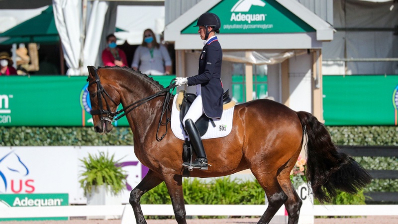 With their score of 75.739%, LaGoy-Weltz and Rassing’s Lonoir, a 2004 Danish Warmblood gelding by de Noir 3 that she co-owns with Mary Anne McPhail, soared to the top of the leaderboard in the final class of the day, qualifying them for Sunday’s Grand Prix Freestyle CDI-W, presented by Wellington Agricultural Services. LaGoy-Weltz began, I feel like he really stayed with me today. Our goal for today was to just go in there and have a clean test, and it was almost clean, apart from a little jig in the walk, but I’m not too worried about that. For me, he gives a lot, and my goal was to keep him back and more collected with more brilliance. That was the plan, and I feel like we executed that well. I feel like we have ridden that line for a while where I keep him quiet but there is less brilliance, or there is brilliance but then it’s hard to keep the consistency, so it’s just getting better and better. Watch the winning ride! (C)Richard’s Equine Video The score was enough to give the pair a personal best, and LaGoy-Weltz said, It feels really awesome to get a personal best, especially when it feels like it was just another day in the office. We were already really happy with the last show, and in the last show if it had been clean, our score would’ve been closer to this type of score. This one would’ve been even higher if it was totally clean, so I’m feeling good about it. The duo has their eyes set on the 2021 FEI Dressage World Cupo Final at the end of March, and LaGoy-Weltz said that she won’t put pressure on herself in regard to the Olympics just yet. For the moment, she explained, our strategy is to just focus on the World Cup Final. We had a different plan, but our timeline got pushed back, so I made the decision to just focus on World Cup at this point and take the pressure off trying to squeeze in Grand Prix Specials before that as well. I’m trying to do my best with that, and then take the Olympics as it follows. We want to do as well as we can and see where it goes from there.